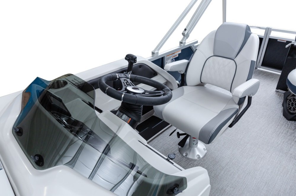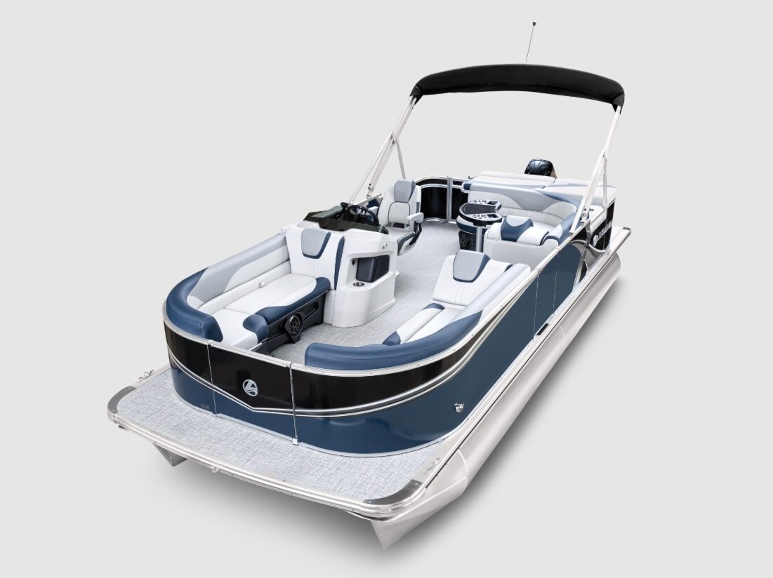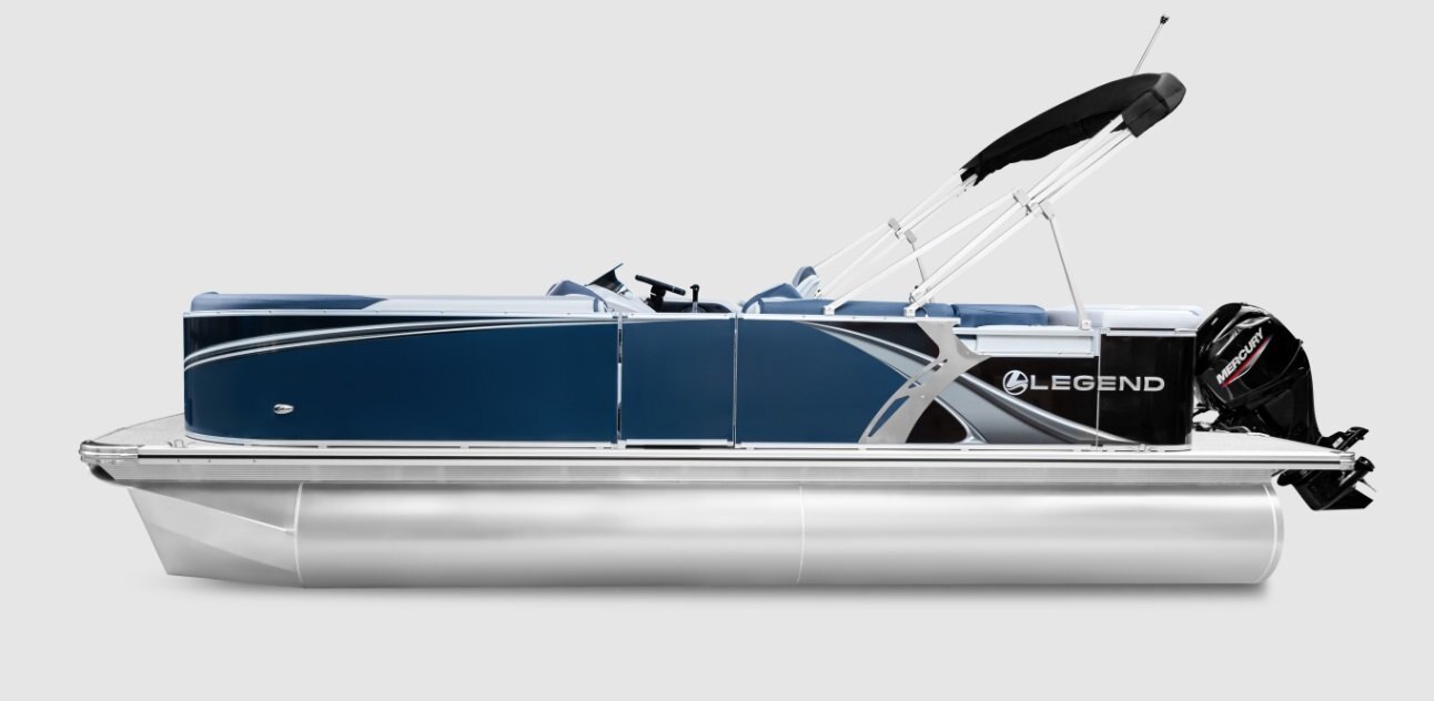 The pure pontoon experience: a stable deck and comfortable seating on top of high-performance tubes and a powerful Mercury motor. |