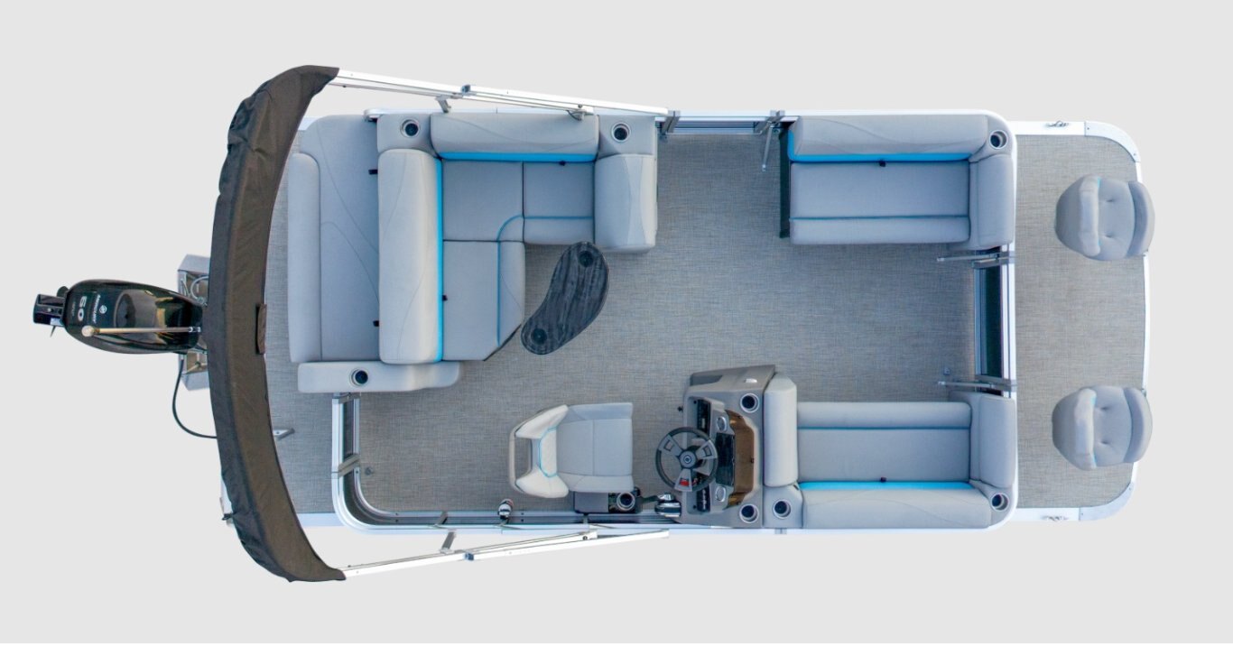 Construction 4 deck-mounted lift and mooring cleats Through-bolted floor fasteners and double-sealed seams Anti-vibration foam-backed quiet fencing Tough shark-nosed cones with spray-deflecting fins Performance-enhancing all-aluminum v-transom 8’ beam Pressurized triple-section tube design with ez-drain plug Full-length protective extruded keels on tubes Individually treated 3/4" 7-ply marine-grade plywood 1 1/4” raised aluminum fence rails with 3/8” risers 23" diameter .090 gauge pontoon tubes Vinyl non-skid strips for entry gates Easy access bow, port side and stern gates 18 Ft Tubes Fire Extinguisher Aluminum Ladder Aluminum Ladder 15 Gallon Direct Fill in Mount
