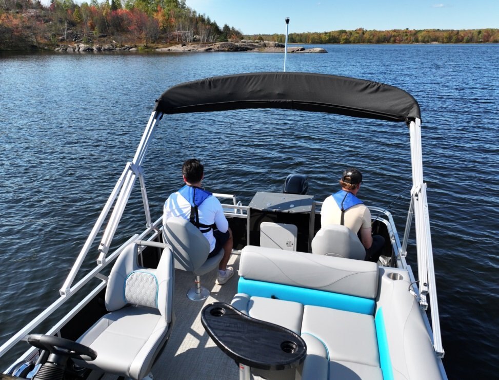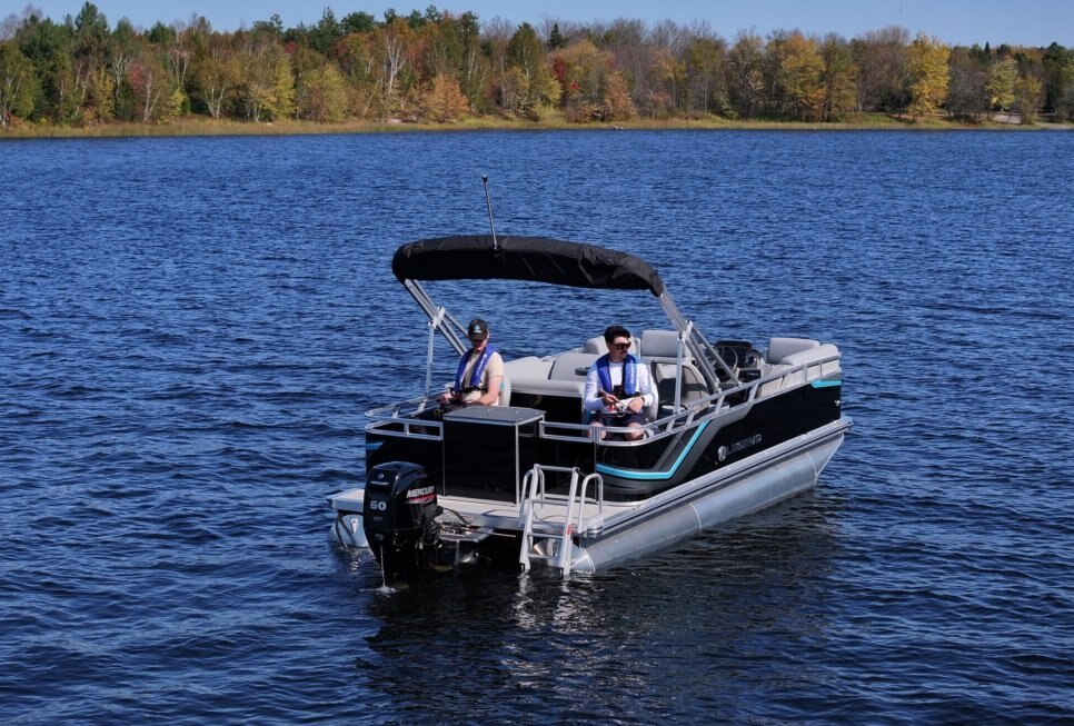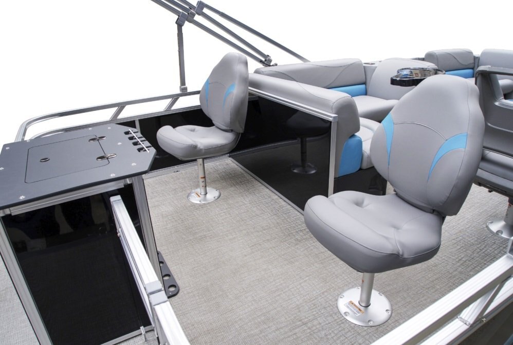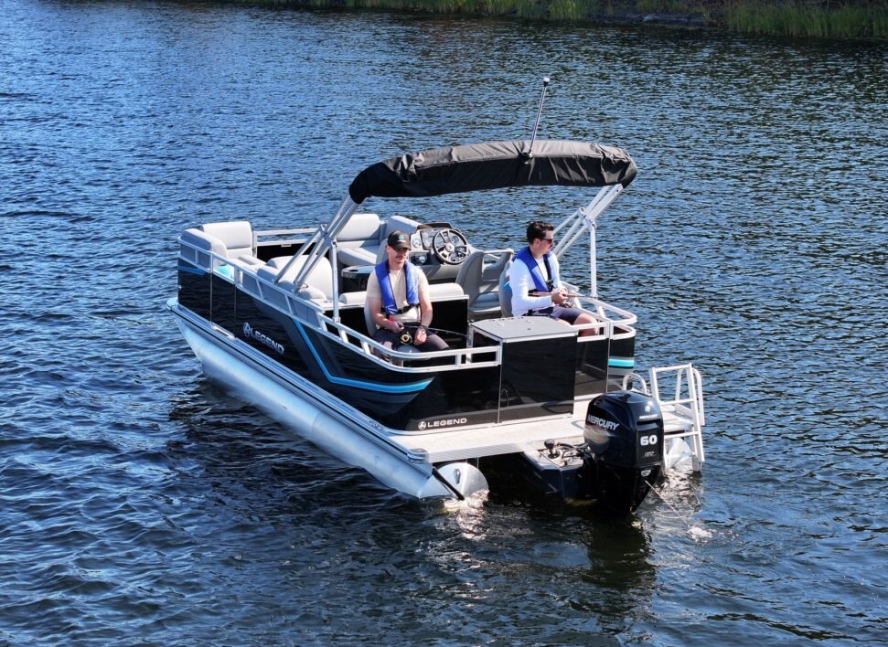 Which is better, a fishing boat or a pontoon? The answer is “Yes” with Legend’s LE 19 RF with lounging in the front and a fishing station in the rear. |