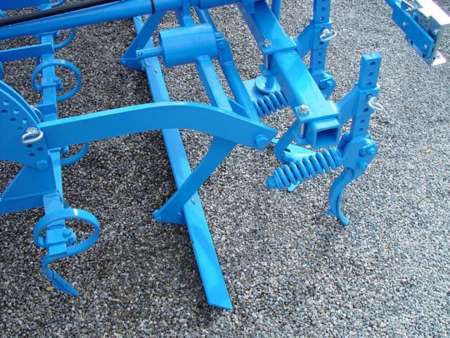 The flexible support arms made from massive spring steel can absorb high impact loads and thus protect the tractor and implement.