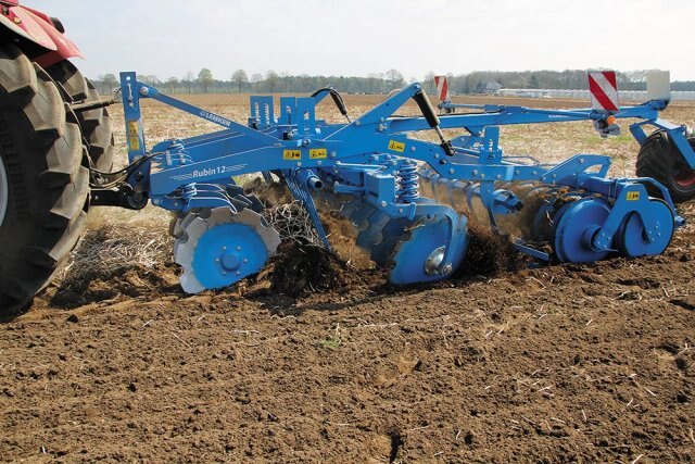 Rubin 12 Deeper, faster and more intensive Compact disc harrows provided previously intense and homogeneous mixing of soil and organic matter to a depth of approximately 12 cm. With Rubin 12, LEMKEN supplements its range of compact disc harrows, consisting of Heliodor 8 and Rubin 9, with a new series, which can work in up to 20 cm depth. The new compact disc harrow can operate on all soils in areas, which were previously reserved for cultivators. With its specially arranged large concave discs, Rubin 12 is designed in particular for the incorporation of large amounts of crop resi- dues. Various rollers from the wide range of LEMKEN rollers offer optimal crumbling, reconsolidation and leveling, as well as precise depth control for differ- ent soil and working conditions. |