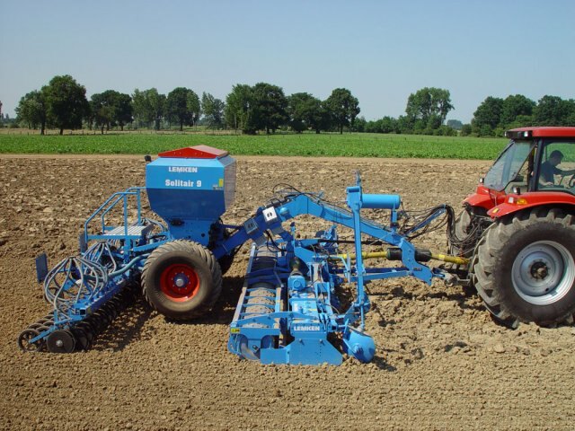 The Solitair 9 pneumatic seed drill is available in a mounted rigid, or folding, version, or a semi-mounted folding version, in working widths of 3 to 6 metres. The potential for use solo, or in combination with a wide range of tillage implements creates, a versatile machine that can be used in a number of establishment situations.