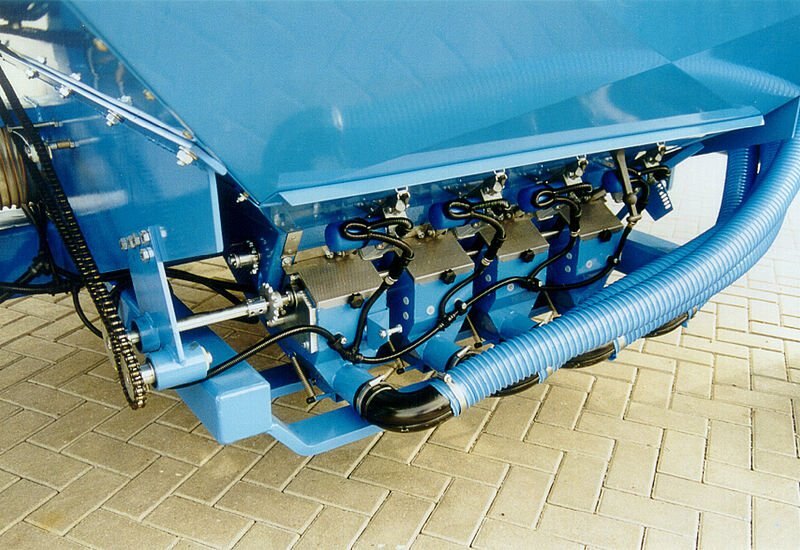The seeding shafts in the metering unit are driven by a powerful electric motor and are electronically regulated. The metering units produce an even flow of seeds and good transverse distribution.
