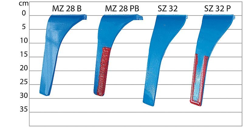 • Spezialgehärtete Messerzinken MZ 28 B