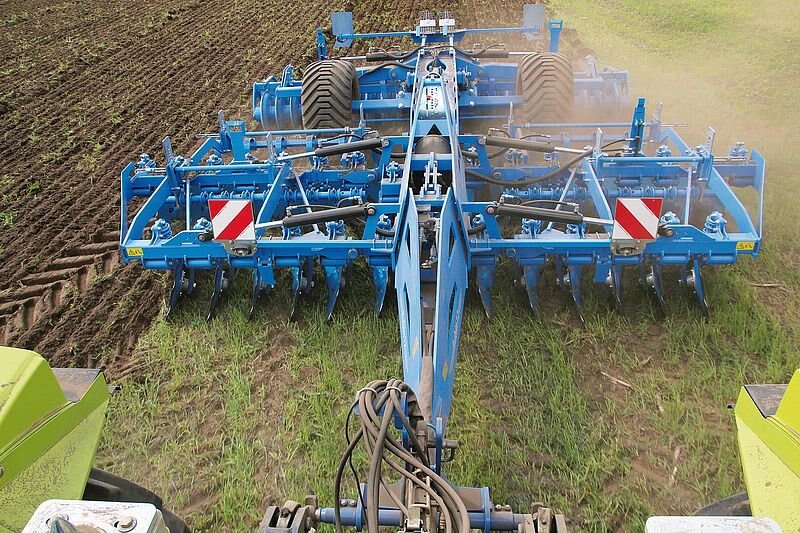 • An impact harrow behind the first row of discs produces intensive mixing and crumbling, while a levelling harrow behind the second row distributes and levels the soil optimally.