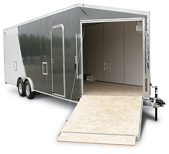 Lightning Enclosed Car Haulers are the best value in the All-Aluminum car hauler market. A long list of standard features and many great packages and options are available to help you design the Car Hauler you are looking for. Whether you are a weekend racer or making the rounds at various car shows, Lightning Car Haulers are the right choice. Our optional Front Ramp Package is a popular choice for those wishing to use their car hauler for their snowmobiles in the winter. A great alternative to having two different trailers. |
