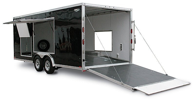 Lightning Enclosed Car Haulers are the best value in the All-Aluminum car hauler market. A long list of standard features and many great packages and options are available to help you design the Car Hauler you are looking for. Whether you are a weekend racer or making the rounds at various car shows, Lightning Car Haulers are the right choice. Our optional Front Ramp Package is a popular choice for those wishing to use their car hauler for their snowmobiles in the winter. A great alternative to having two different trailers. |