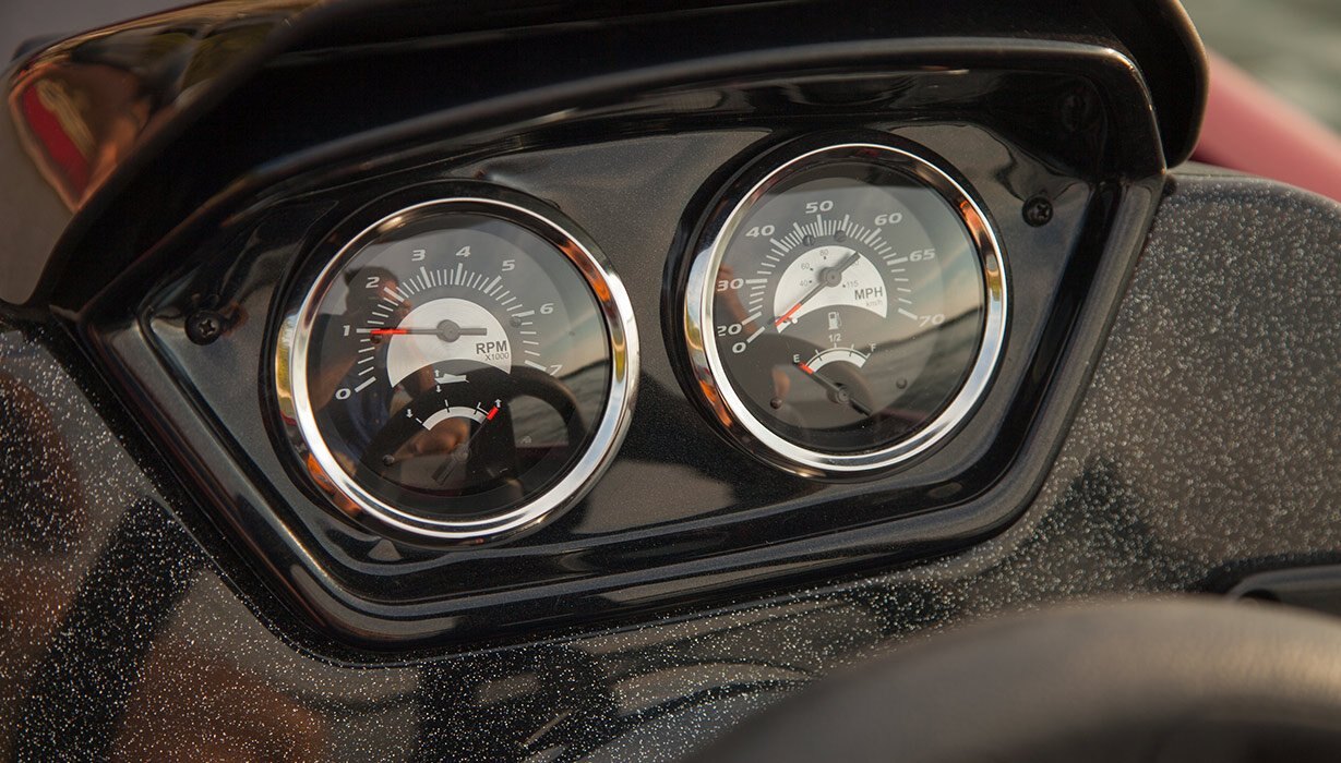 Tach, speed, fuel & trim gauges w/ chrome bezels
