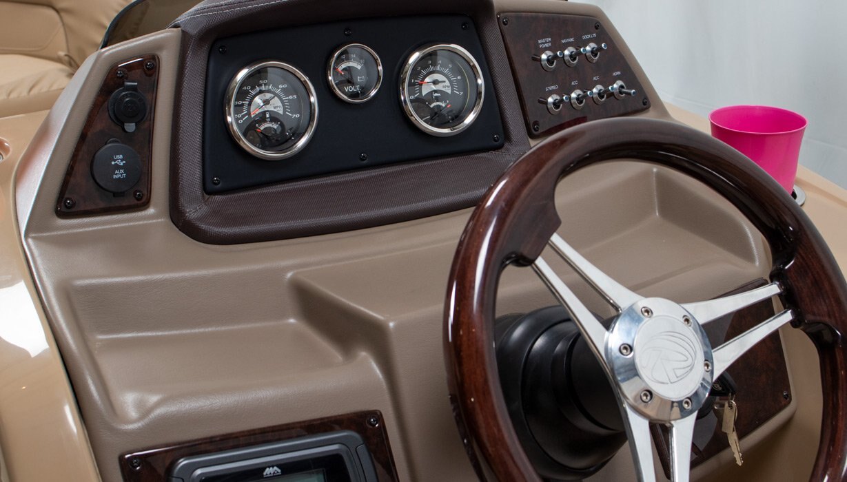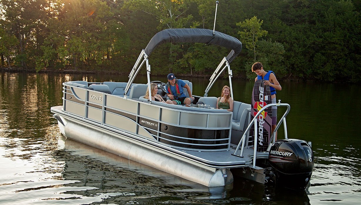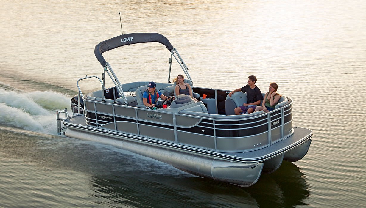 Introducing the inviting Retreat 230 WT, a spacious Lowe pontoon with all the amenities for a relaxing getaway. Stretch out on the plush lounge seating in the bow, or kick back on the dual chase lounges with easy walk-thru access. When snack time calls, gather with friends and family around the stylish plexiglass table with drink holders, and enjoy a break from the sun’s rays under the heavy-duty 9’ Bimini top. If speed is what you crave, the Retreat 230 WT’s optional High-Performance XL package increases fuel and horsepower capacity, rocketing your fun sky-high. And with its stylish fences featuring a chrome Lowe logo and a choice of vibrant colors, the Retreat 230 WT reflects your good taste. Start your own getaway today—contact your local Lowe dealer!