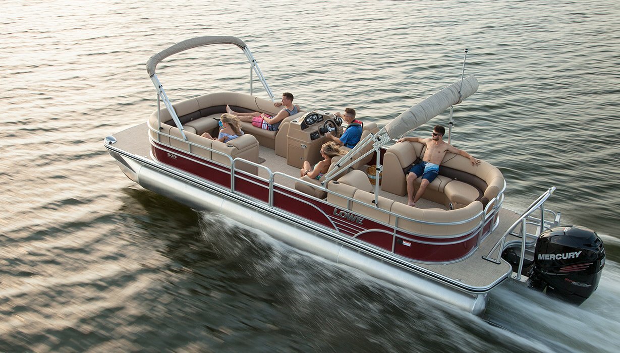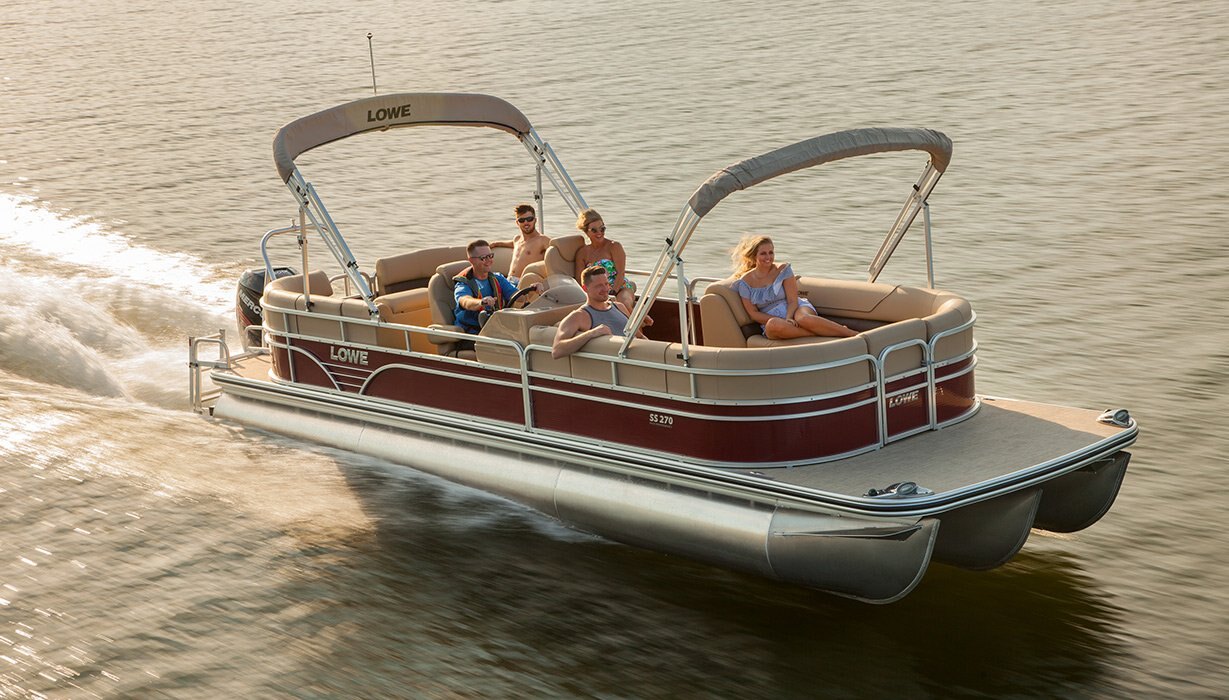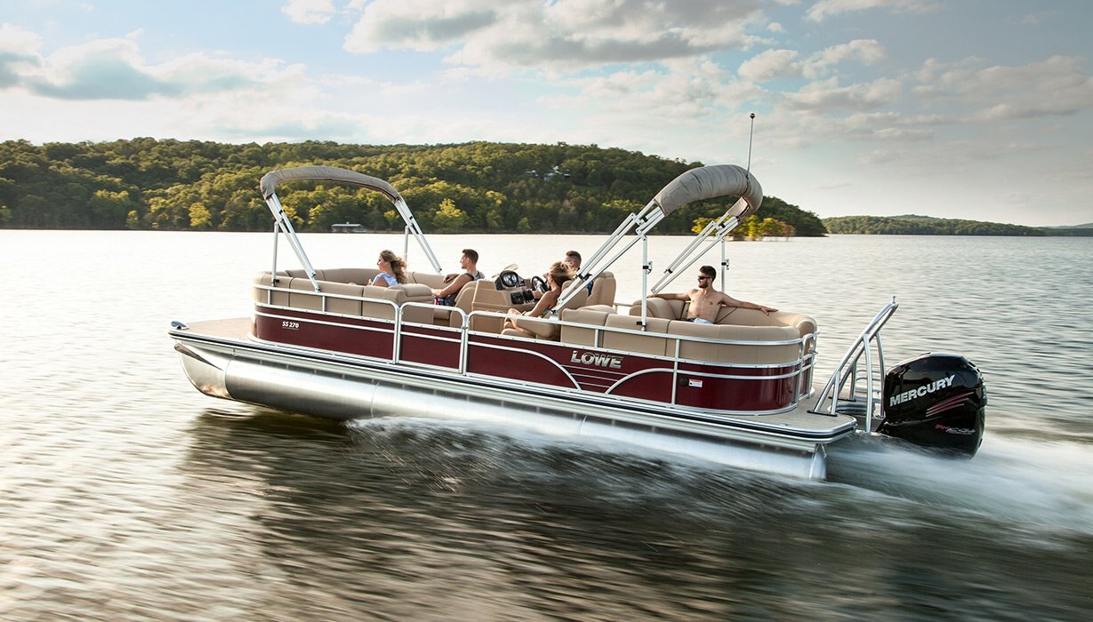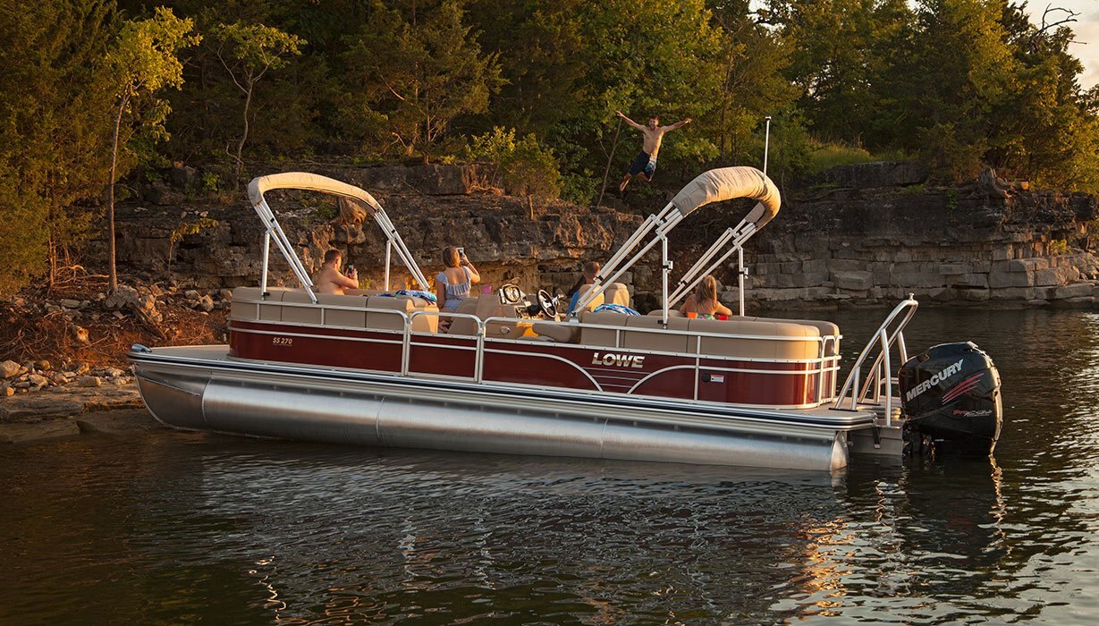 Launch a thousand memories from the Super Sport 270 Walk-Thru! This spacious pontoon features a huge extended front deck, giving you ample room to jump, dive and play. Enjoy loads of comfortable seating, convenient storage, and premium amenities including a 9-foot Bimini top and Marine stereo. The SS270 comes standard with the Lowe High-Performance XL package, meaning you get an incredibly smooth, stable ride and extra performance capacity. Choose from a range of cutting-edge Mercury® engines to power every adventure. The Super Sport 270 is a world of fun!