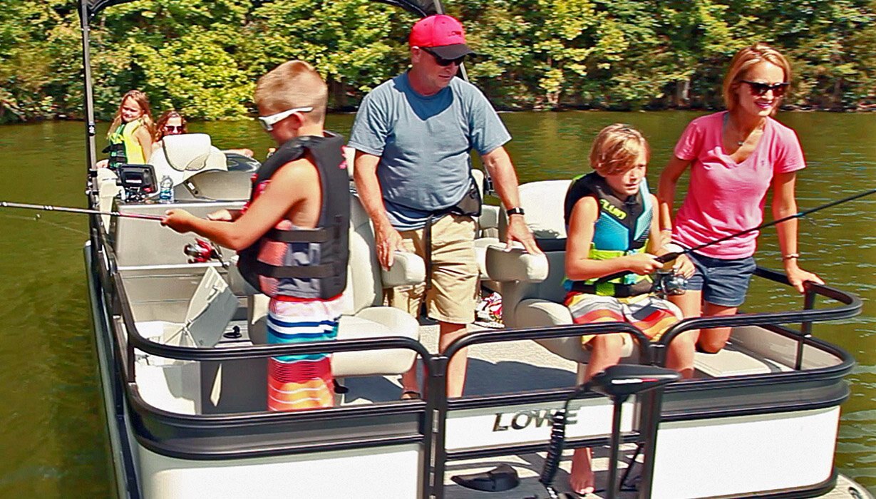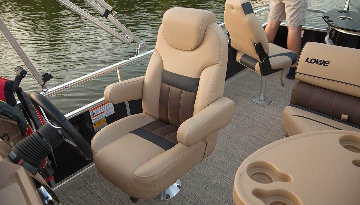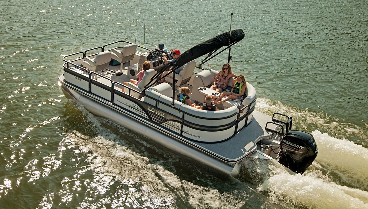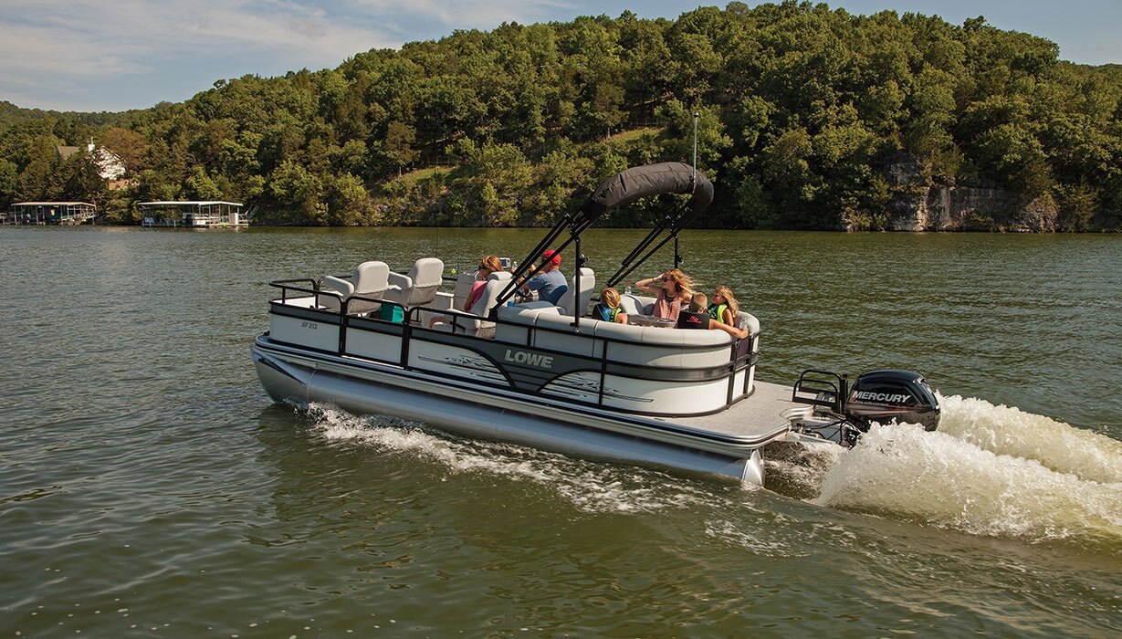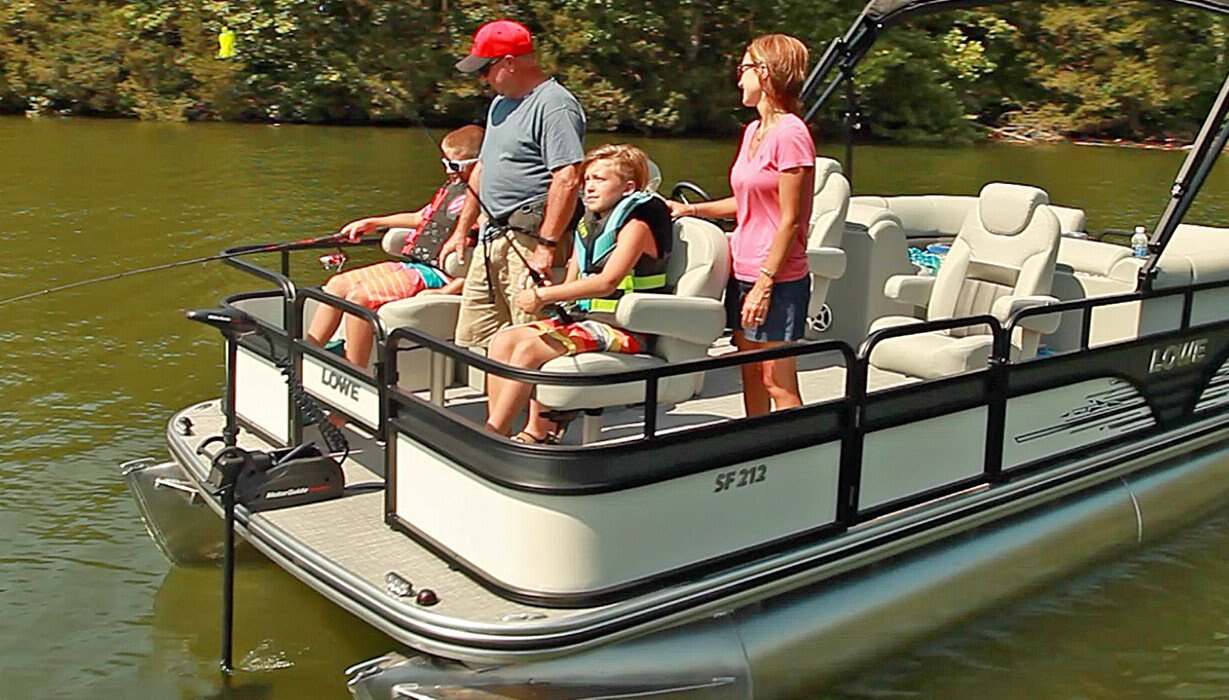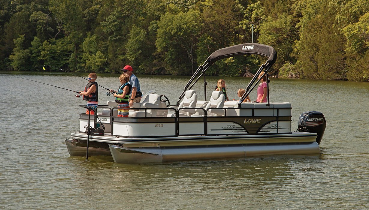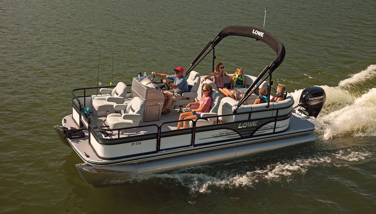 The new SF212 WT combines all the amenities for a fun-filled day on the water with the features you need for fishing action, all in a spacious, convenient walk-thru layout. You’ll find plenty of comfortable seating, including dual walk-thru aft couches. For anglers, two pedestal fishing seats in the bow provide a prime perch; choose from several factory-installed MotorGuide® trolling motor and Lowrance® fishfinder options. A heavy-duty bimini top provides welcome shade, while the stylish helm console makes operating the pontoon a breeze. Quality Lowe construction details include 25”-diameter multi-chambered logs and pressure-treated wood floors with the Lowe Limited Lifetime Warranty, for added peace of mind.