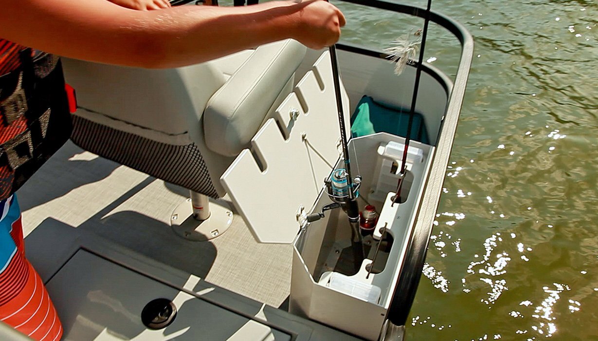 • Vertical Rod Holder & Tackle Box-Factory Installed
