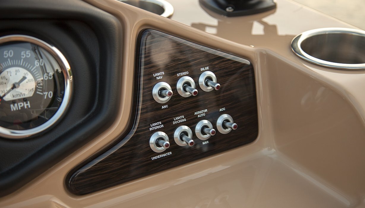• Tach, speed, fuel & trim gauges w/ chrome bezels