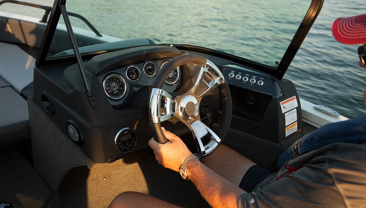 • Dual black consoles w/full walk-thru windshield & chrome accented wheel