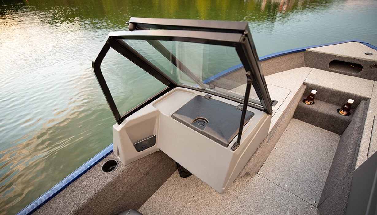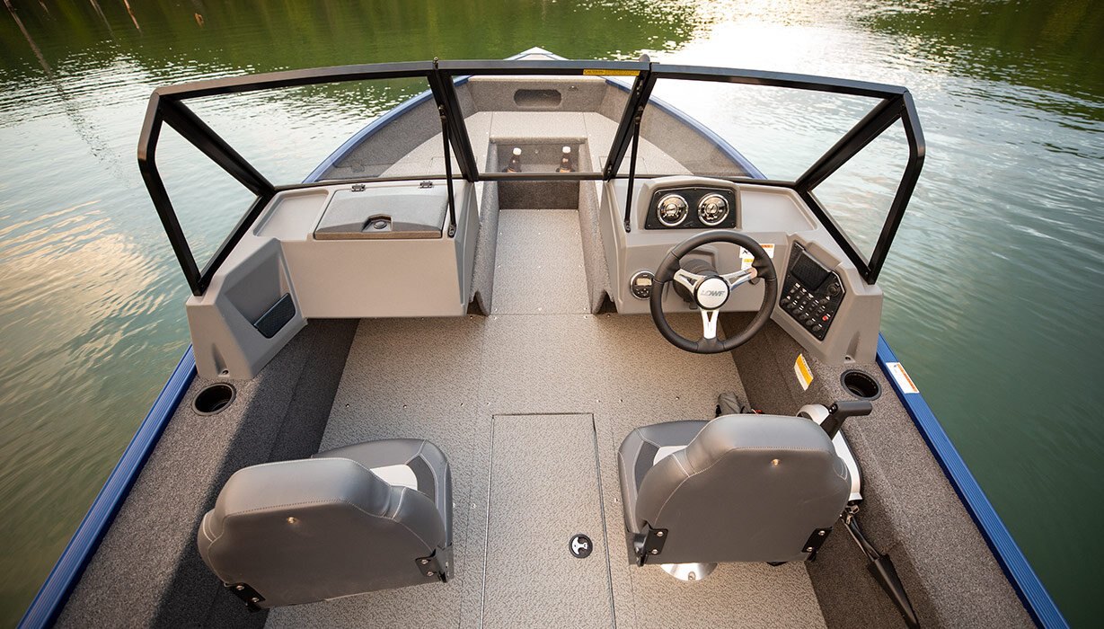 • Dual black consoles w/full walk-thru windshield & black soft grip wheel