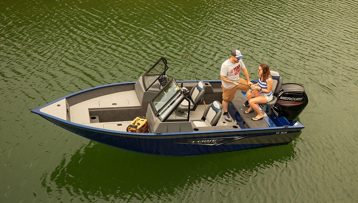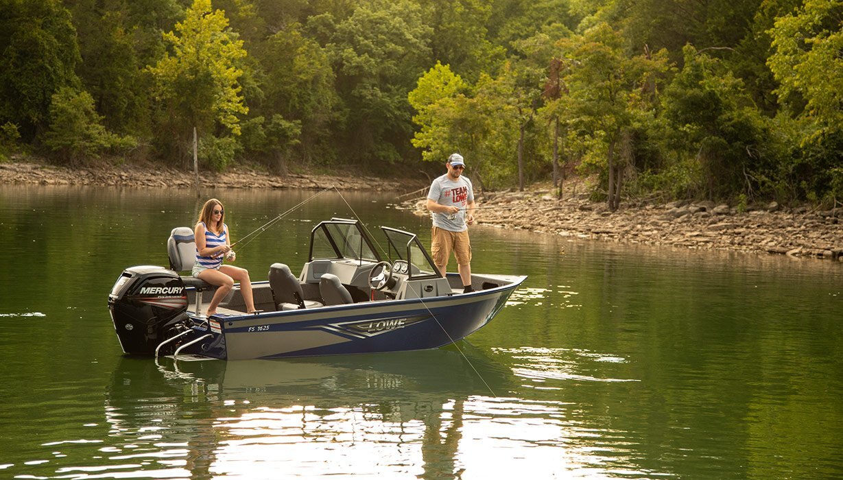 Start making memories that everyone will smile about years from now on the all-new Lowe FS 1625. The first time your son made it up on a wakeboard. Your daughter's first catch. Weekends that you and your bro’s spent at your favorite fishing hole. This is the boat that does it all without breaking the bank. With seat bases on front and rear casting platforms, center in-deck rod locker and an aerated bow livewell, the Lowe FS 1625 is ready to take anglers casting for gamefish. With 3 pedestal seats, it’s ready for anchoring and soaking bait for panfish, too. Or, set it up for watersports of all sorts with an optional ski pylon. Big-boat amenities including a Bluetooth-compatible Jensen stereo and potent Mercury® power puts you in control of the fun. The rugged aluminum hull dominates all conditions, and the walk-through layout provides extreme convenience. Enjoy all your on-water obsessions on this roomy, high-performing, and versatile fish-n-ski package.