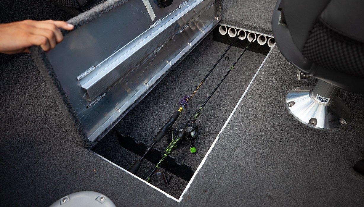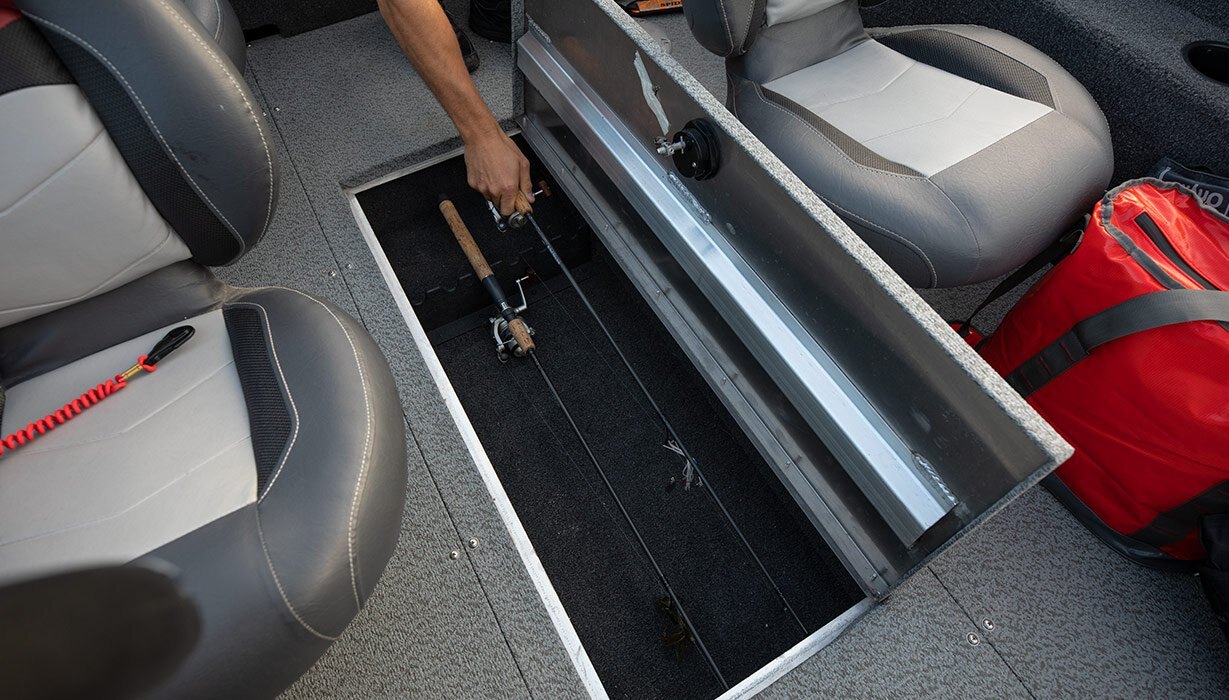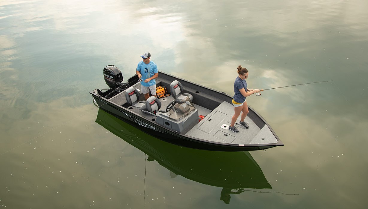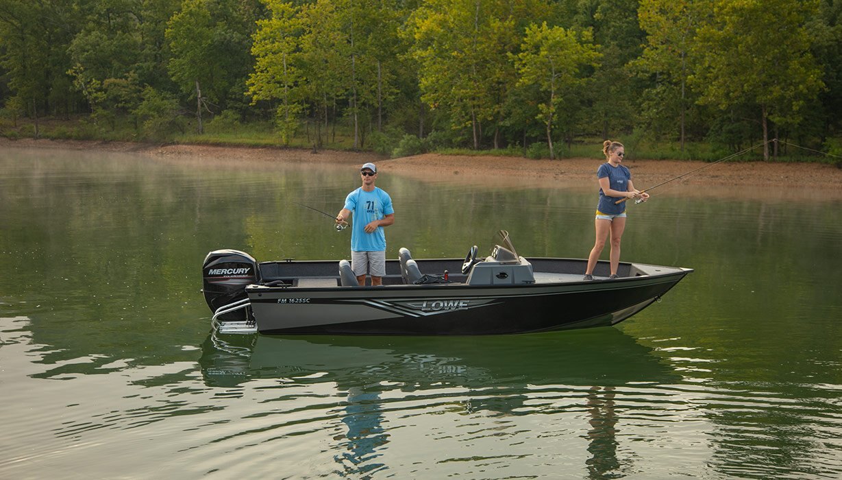 | The new Lowe FM 1625 SC’s tournament-inspired design provides unbelievable value and performance at a believable price. Refreshed for 2019, it features a spacious in-floor rod locker that can carry up to (6) 8’ rod lockers, four ultra-comfortable pedestal fishing seats with 6 bases, a new lager 23 gallon bow livewell, and a Lowerance Hook2 fish finder. Its deep-V aluminum hull handles rough water with ease, while its huge deck provides serious anglers the competitive edge to reel fish in. It also comes packed with plenty of smart storage space, a durable side console with chrome bevel gauges, and convenient flip-up stainless steel cleats. The professional-grade FM 1625 SC is a fishing machine that lives up to its name. It’s everything you love about Lowe in a compact-sized, ready-for-action fish boat. |