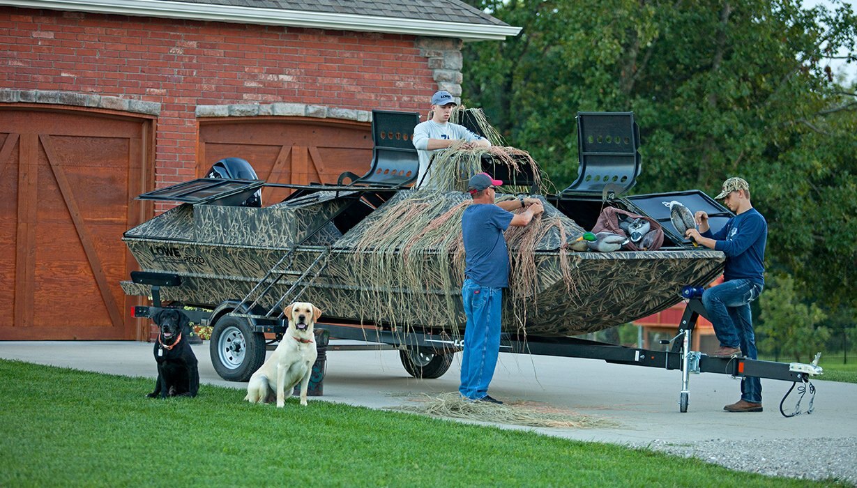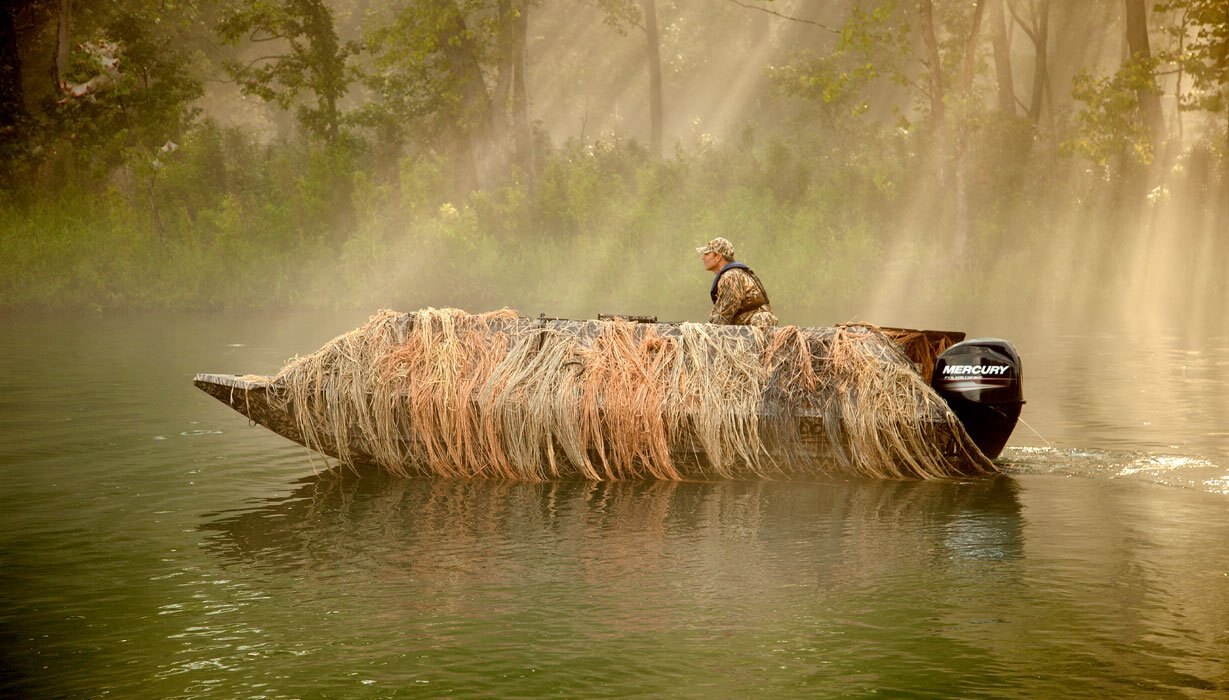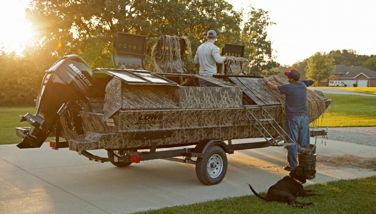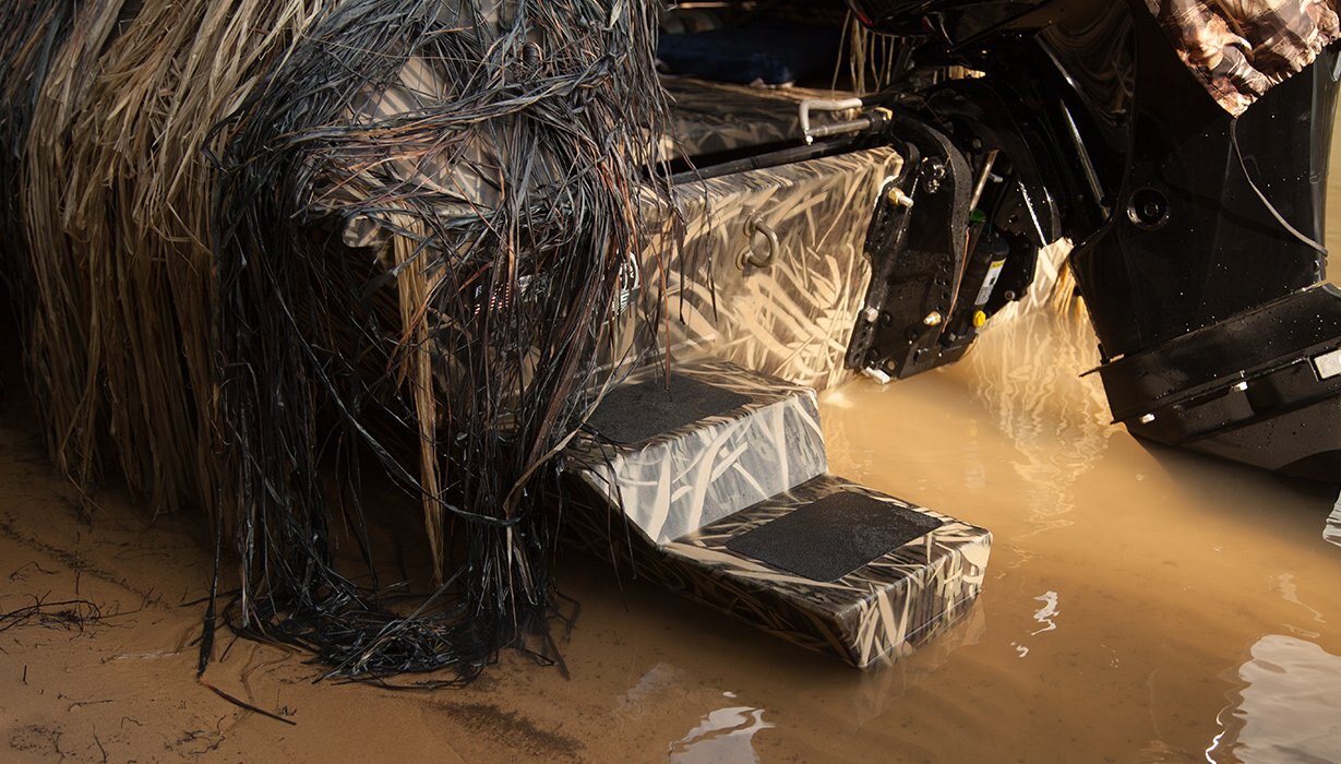 The Roughneck 2070 Waterfowl is the new leader in the duck-hunting game. This rugged, all-aluminum fishing boat comes equipped with a BUST’EM Blind, quite simply the most functional and innovative hard-shell boat blind on the water today. An intuitive side console helm paired with a cutting-edge Mercury FourStroke outboard engine—up to 75 horsepower!—makes for easy handling and strong, reliable performance. Choose from smart options including premium Lowrance fish finders, MotorGuide or Minnkota trolling motors and more. And we didn’t forget about man’s best friend: The Roughneck 2070 Waterfowl features a standard integrated dog ladder for easy boarding following duck retrieval. Get out there: The hunt is officially ON.
