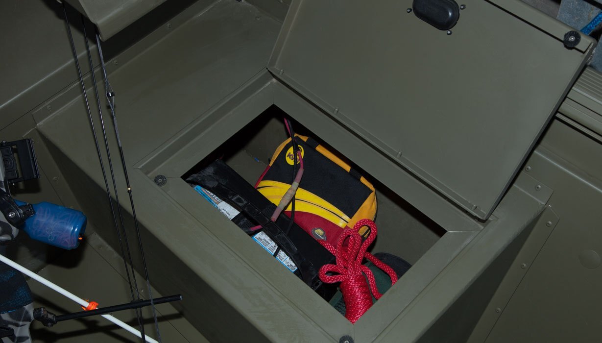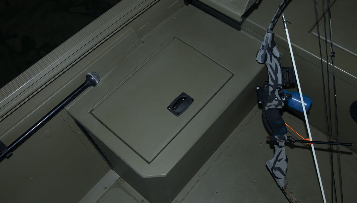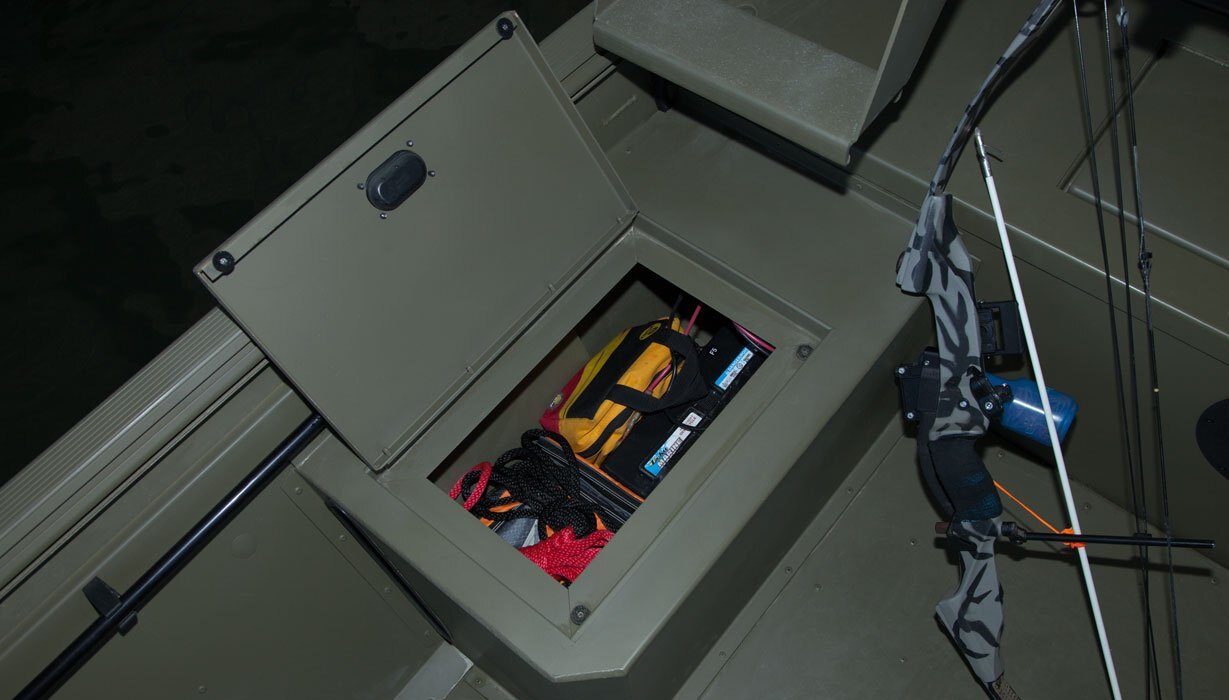 Bow deck storage compartments (2) w/ door seal and compression locks