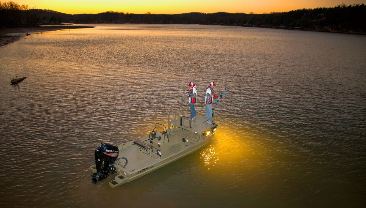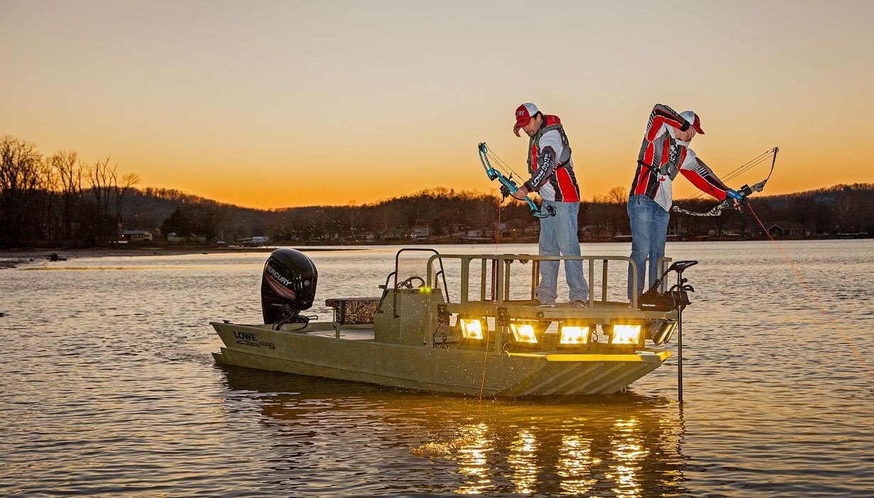 Bow fishermen, take aim: The new Roughneck 1860 Archer from Lowe is your best weapon on the hunt for fish. A huge elevated bow shooting deck delivers ample room to fire on your target, while amenities throughout this center console fishing boat keep you armed and ready. Count on Mercury® outboard power and proven Lowe construction for ultimate performance and lasting durability. And with a ton of premium options available, your bow-fishing platform can be outfitted to your specific preferences.
