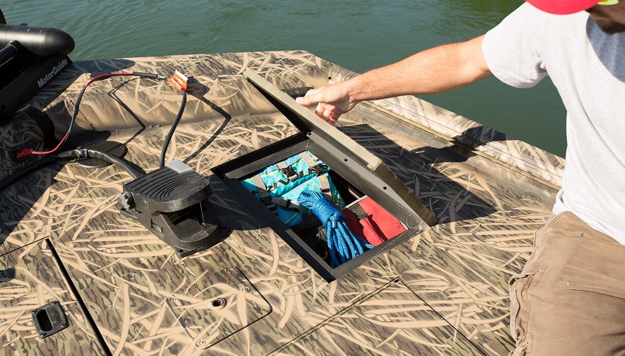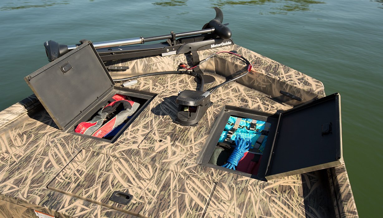• Bow deck storage compartments (2) w/ door seal and compression locks
