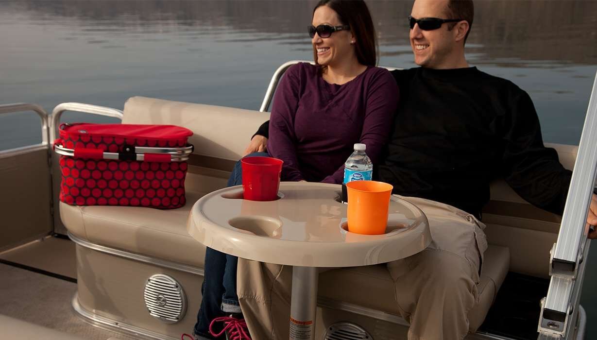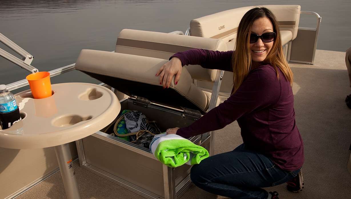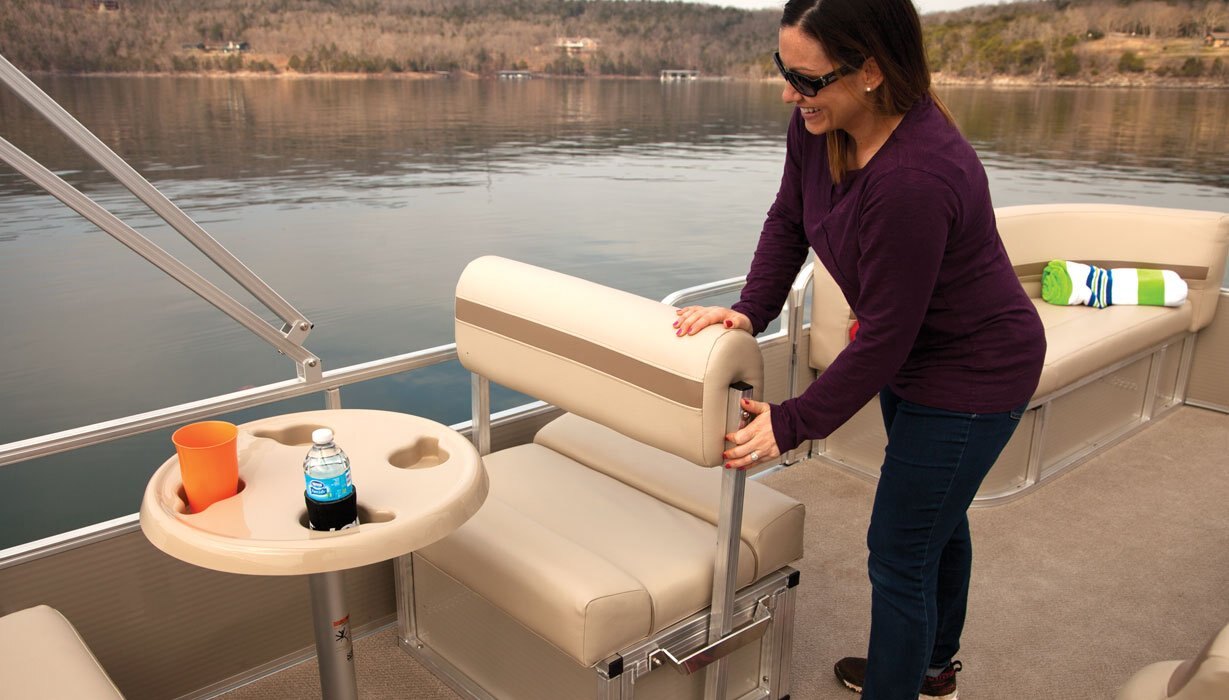 • Aft bench seat with storage underneath with two cup holders and storage tray
