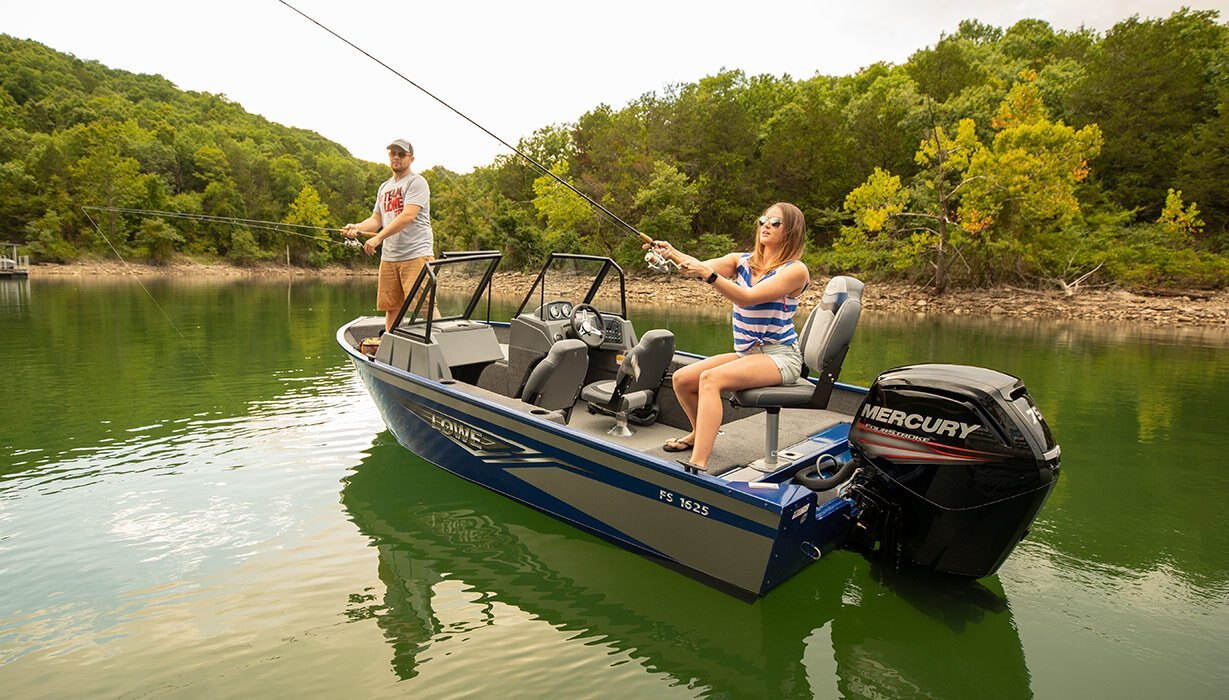 | Start making memories that everyone will smile about years from now on the all-new Lowe FS 1625. The first time your son made it up on a wakeboard. Your daughter's first catch. Weekends that you and your bro’s spent at your favorite fishing hole. This is the boat that does it all without breaking the bank. With seat bases on front and rear casting platforms, center in-deck rod locker and an aerated bow livewell, the Lowe FS 1625 is ready to take anglers casting for gamefish. With 3 pedestal seats, it’s ready for anchoring and soaking bait for panfish, too. Or, set it up for watersports of all sorts with an optional ski pylon. Big-boat amenities including a Bluetooth-compatible Jensen stereo and potent Mercury® power puts you in control of the fun. The rugged aluminum hull dominates all conditions, and the walk-through layout provides extreme convenience. Enjoy all your on-water obsessions on this roomy, high-performing, and versatile fish-n-ski package. |