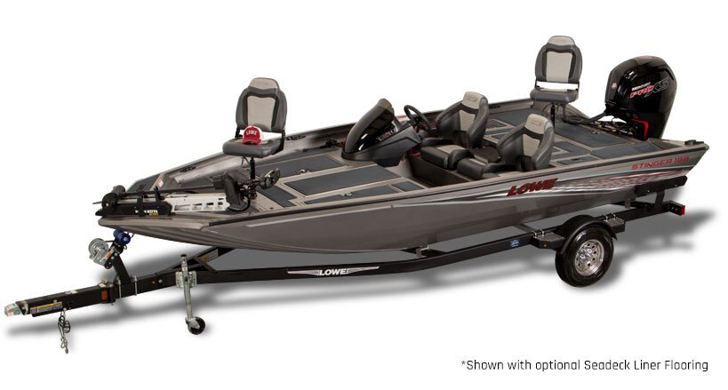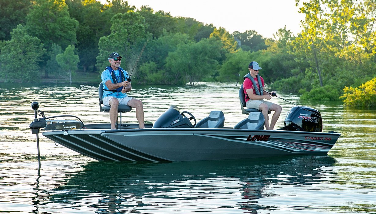 The recently updated Lowe Stinger 188 is designed to custom-fit the way you fish for bass, down to the last detail. From the look of the upgraded red backlit console panel to the feel of its super-wide 94” beam under your feet, this legend was born to help you fish better. This all-aluminum champion is designed with best-in-class features including over 77 sq. ft. of fish-fighting space to keep you right in the action. With capacity for up to 115 horsepower, the Stinger 188 gets you on the fish fast, and thanks to durable Lowe construction, it can handle greater stresses and bigger fishing action than the competition. Premium fishing features include lockable rod storage with 8 tubes, aerated livewell, comfortable fold-down fishing seats, a MotorGuide X3 45FW trolling motor and more. Top it all off with a stylish fiberglass console with metal flake finish, tons of in-deck storage, and eye-catching red-tint accents, and you’ve got a formidable bass-fishing weapon.