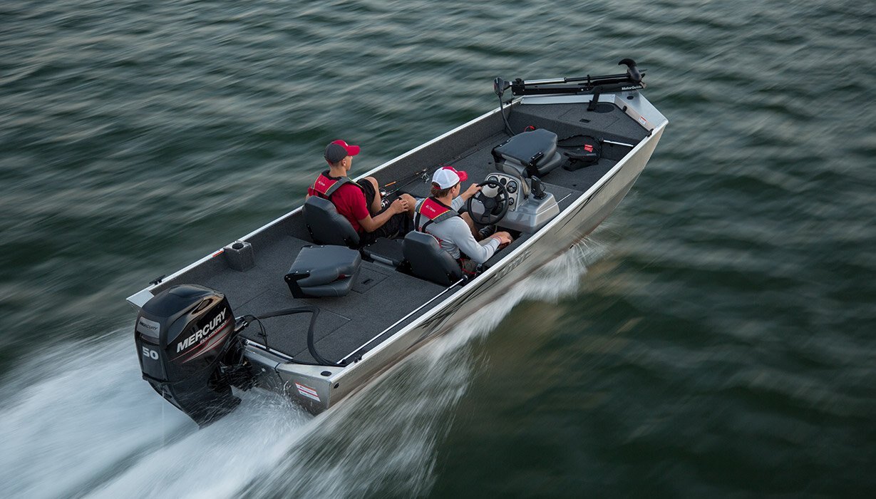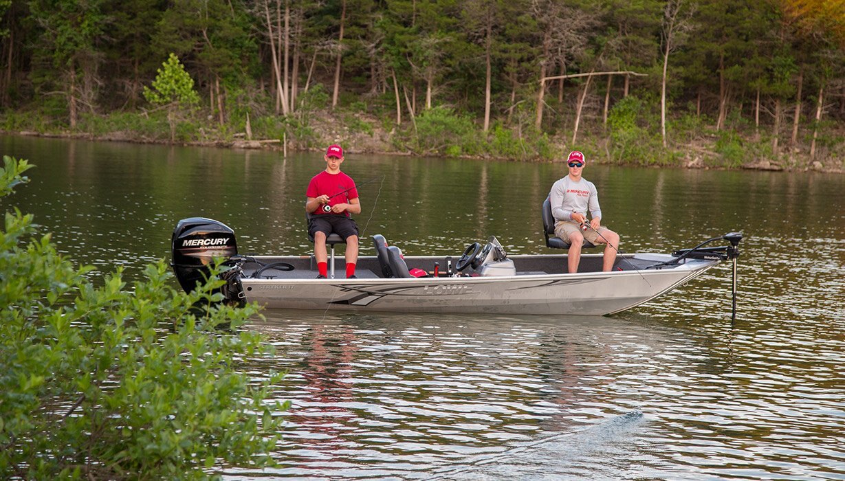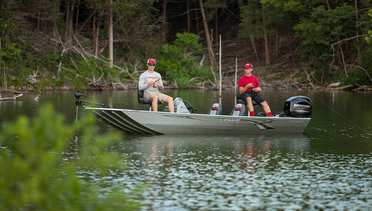 Strike fast while the action is hot, with the Stryker 17! Thanks to an unbeatable combination of reliable, efficient Mercury® power, premium fishing amenities and a well-built, all-aluminum Lowe mod-V hull, the Stryker 17 delivers fishability you can count on and value you can trust. Two gray-and-red fold-down seats and a center seat with step carry you and your fishing buddies to and from the action in comfort. Bow and stern 13-gallon aerated livewells take care of every catch. With engine options up to 60 horsepower and an easy-to-operate side-console layout with ample storage, the Stryker 17 offers excellent power and performance. Bring home a winner with the Lowe Stryker.