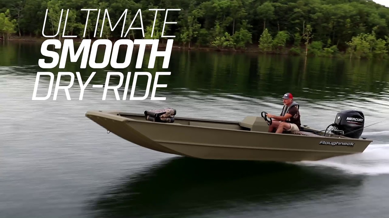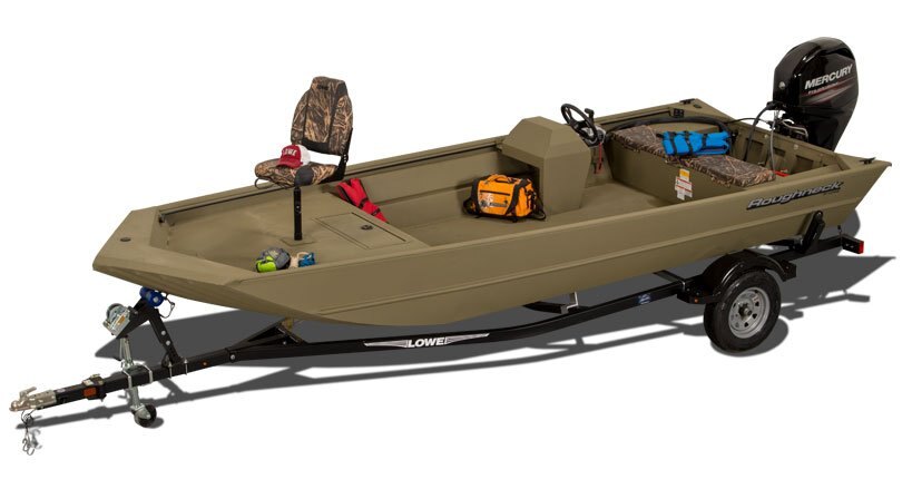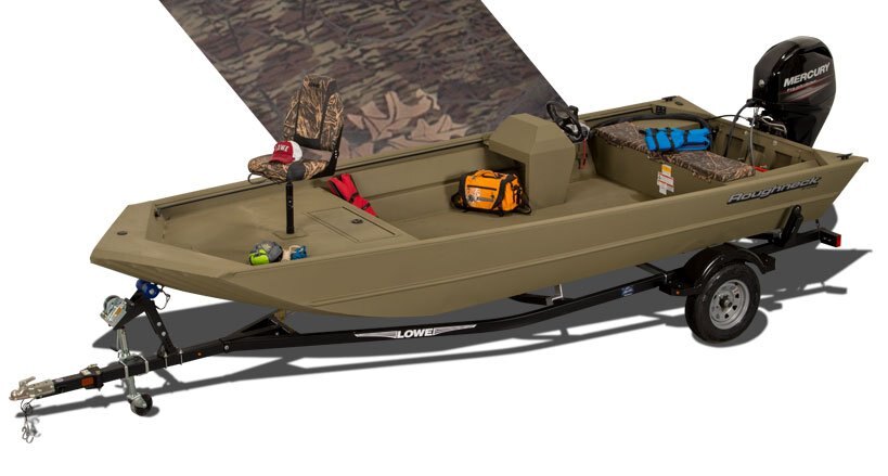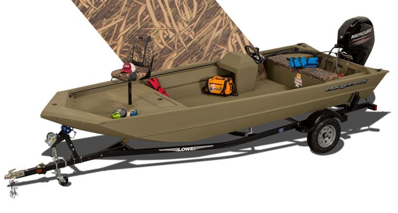 | Over the past 25 years, The Lowe Roughneck has gained a reputation for being the toughest, hardest working, most versatile Jon boat you can buy, and the 25th Anniversary Roughneck 1860 is no exception. Like every Lowe Roughneck, the 1860 25th Anniversary is all welded and overbuilt to exacting standards, with lightweight, durable, wood-free construction and a variable-deadrise V-hull for the ultimate, smooth, dry ride. The Roughneck gets you where you want to be so you can get right up in the flats, cast from the shallows, or drag it up on shore for some stealthy hunting opportunities where others can’t go. This 25th Anniversary edition Roughneck comes standard in Dead Grass Green and it’s set up to fish with a 19-gallon livewell. Best-in-class options include pedestal fish seat, navigation lights, trolling motor with harness, bilge pump, rod/gun box and an assortment of camo paint finishes. With 25 years of legend behind this Roughneck, it is sure to become an essential part of your hunting and fishing arsenal. |