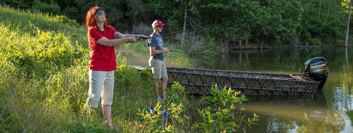 | Whether your passion is in the perfect cast or the perfectly camouflaged duck blind, the Lowe Roughneck 1760 hunting jon boat to meet your needs. Equipped with the right amenities for fishing, hunting or work on the water, the Roughneck 1760 is a tough and durable build with the power of a workhorse. Maximum strength and durability are ensured with top-shelf all-welded, all-aluminum construction. Take to the water and make the day yours! |