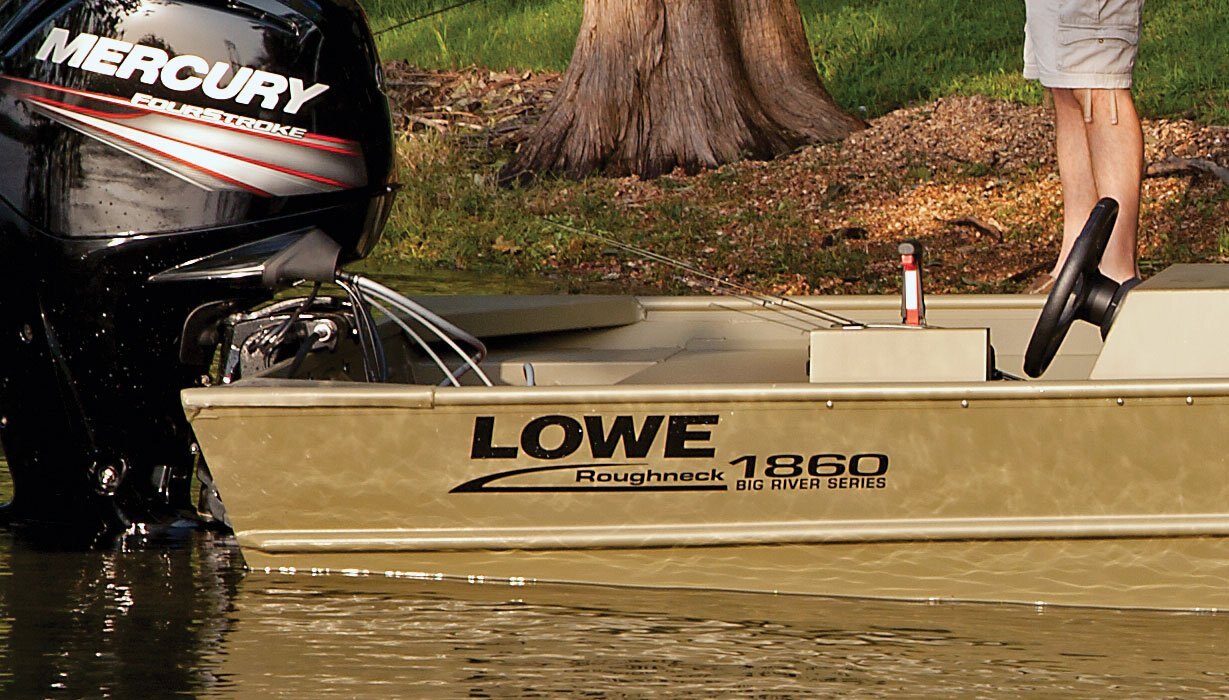 | Lowe guarantees its lightweight, durable and wood-free construction, an aspect that’s on full display in the Roughneck 1860 Big River. This versatile fishing boat gets you right where you need to be, thanks to reliable, efficient Mercury® power. And with its spacious design and numerous options to increase storage capability, the 1860 Big River is built to withstand anything you throw at it. |
