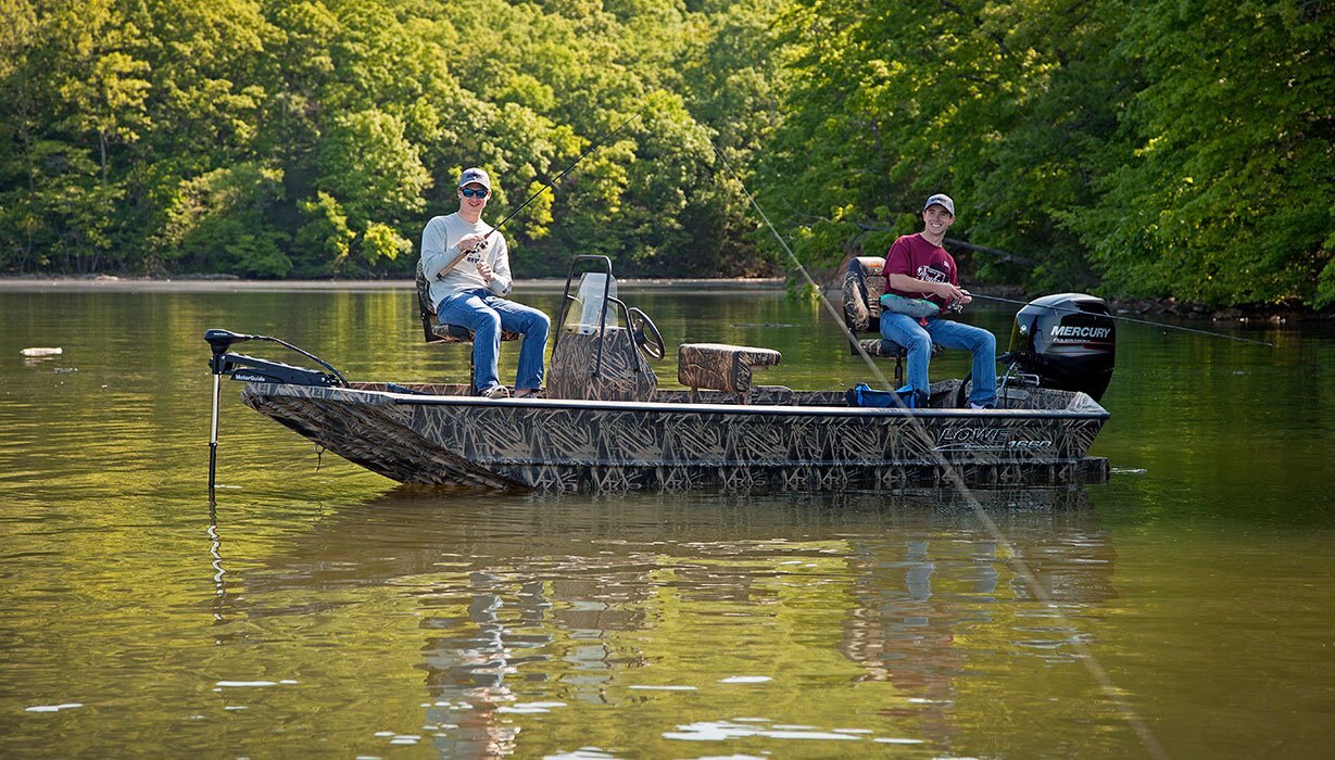 | You’ll never lose your way with the Roughneck 1660 Pathfinder. Thanks to its tunnel jet engine configuration, you can take on the shallowest streams and rockiest ledges with confidence. And thanks to its spacious layout featuring bow and stern casting decks with pedestal seat bases, there’s plenty of room to get after the fish. Two available camouflage paint schemes—Mossy Oak Break-Up and Shadow Grass—with optional camo pedestal seats provide for a stealthy approach to your prey. Meanwhile, a super-durable pressed-in cross rib stringer system and all-aluminum Lowe construction provide lasting durability, even in the face of heavy use. The path to fishing success is clear with the Lowe Roughneck Pathfinder. |