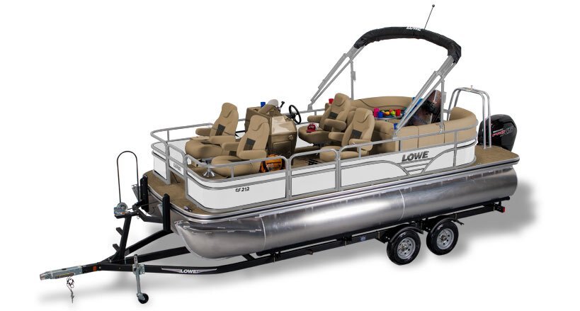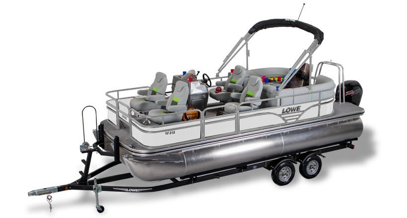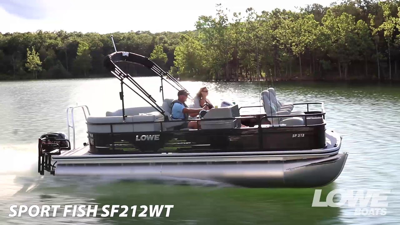 The new SF212 WT combines all the amenities for a fun-filled day on the water with the features you need for fishing action, all in a spacious, convenient walk-thru layout. You’ll find plenty of comfortable seating, including dual walk-thru aft couches. For anglers, two pedestal fishing seats in the bow provide a prime perch; choose from several factory-installed MotorGuide® trolling motor and Lowrance® fishfinder options. A heavy-duty bimini top provides welcome shade, while the stylish helm console makes operating the pontoon a breeze. Quality Lowe construction details include 25”-diameter multi-chambered logs and pressure-treated wood floors with the Lowe Limited Lifetime Warranty, for added peace of mind.