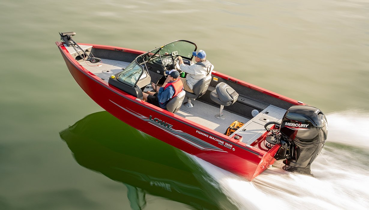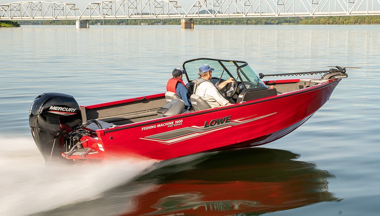 From the tournament trail to fish scales, the new Lowe FM 1900 WT provides anglers a commanding walk-thru fish boat package featuring both bold styling and incredible fishability. Designed to be a tournament-class performer with unbeatable quality, this full-sized fishing machine flagship is ready to take on the big waters. The FM 1900 WT features a durable aluminum Deep-V hull and a smart walk-thru windshield for easy access to the bow and stern fishing decks, each with a large aerated livewell. Take all the rods you want and easily store up to 10 total rods in its lockable center and side rod lockers. Massive built-in storage compartments including an in-deck storage space keeps your gear safe and stowed. Available with an array of quality fishing options including your choice of an optional Lowrance® Hook2 4X fish finder, MotorGuide® or Minn Kota® trolling motors, and Mercury® power, the FM 1900 WT will ramp up your arsenal even further. Set yourself apart from the competition with a flagship FM 1900 WT. It’s time you left your competition in your wake!