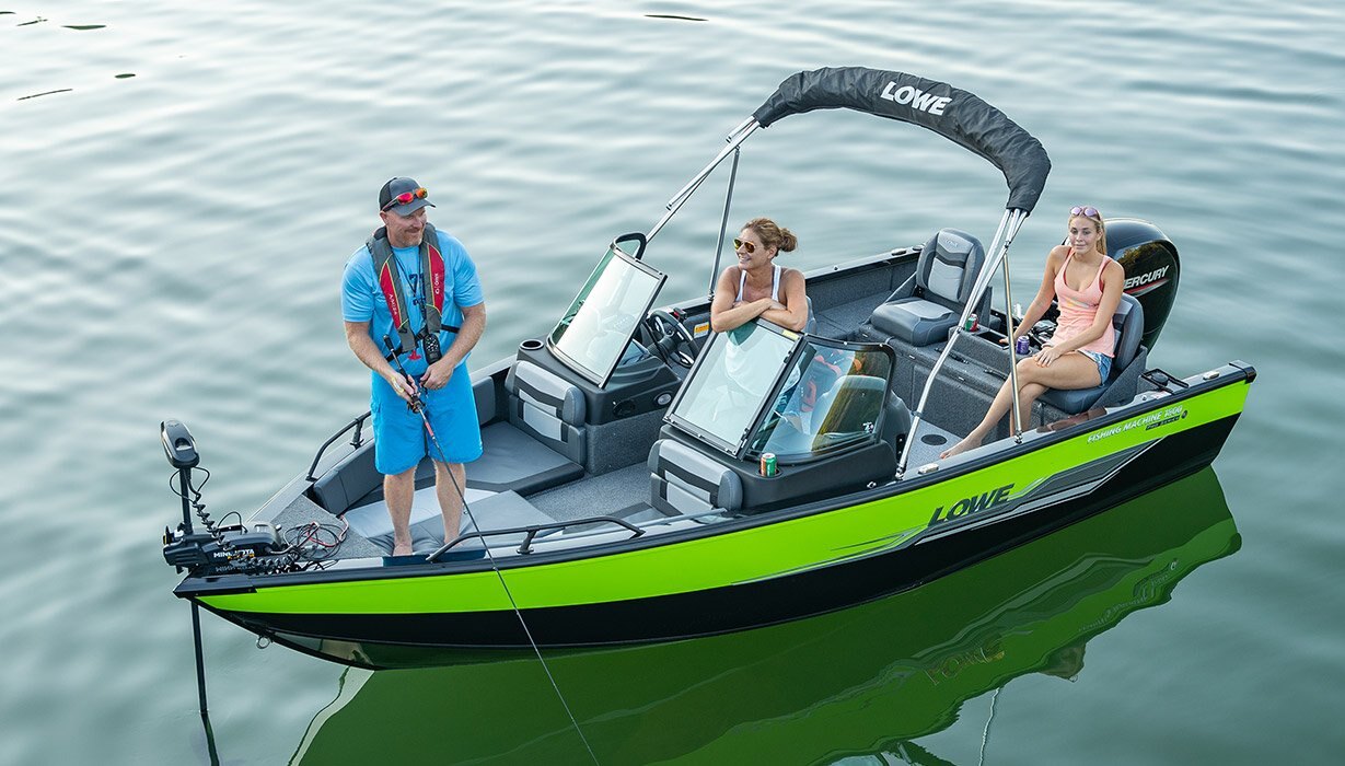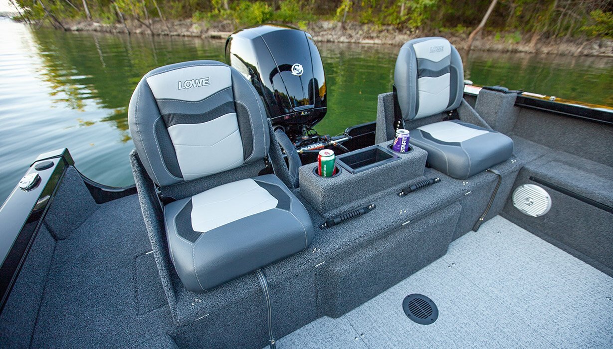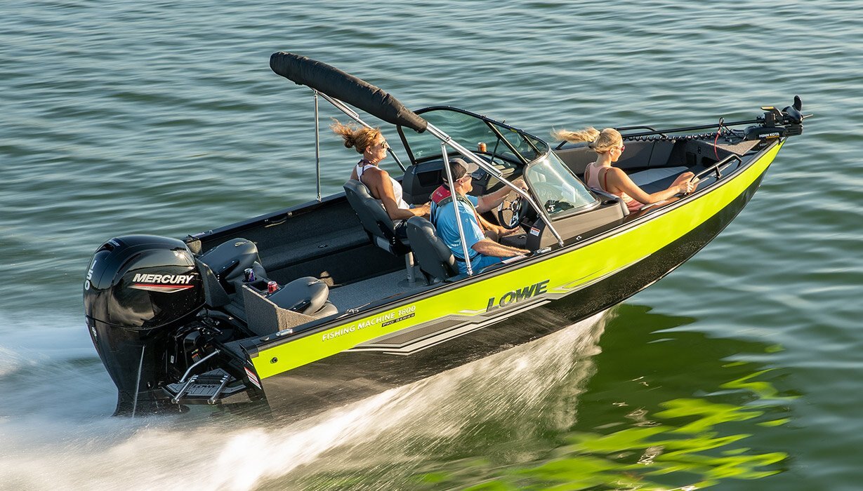 | The recently refreshed FM 1800 WT provides a tournament level performance fish package in a perfect size aluminum boat. Like it’s big brother, the flagship FM 1900 WT, the FM 1800 WT provides anglers a commanding walk-thru layout featuring both bold styling and incredible fishability. Ringing in at 17’ 10” with a 95” beam, it is designed to be a tournament-class performer in a medium format boat with ample storage and our legendary Lowe ride. The FM 1800 WT features a durable aluminum Deep-V hull and a smart walk-thru windshield for easy access to the bow and stern fishing decks, each with an aerated livewell. Take up to 10 total rods and store them in lockable center and port side rod lockers. Convenient built-in storage compartments including an in-deck storage space keep your gear safe and stowed. Available with an array of quality fishing options including your choice of optional a Lowrance® Hook2 4X fish finder, MotorGuide® or Minn Kota® trolling motors, and Mercury® power, the FM 1800 WT can be geared up for your style of fishing. Don’t settle for less when you can have it all. The Lowe FM 1800 WT. |