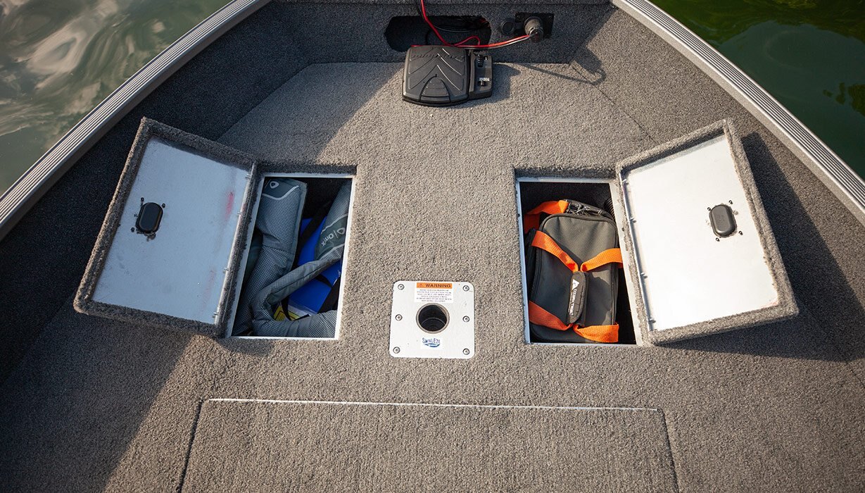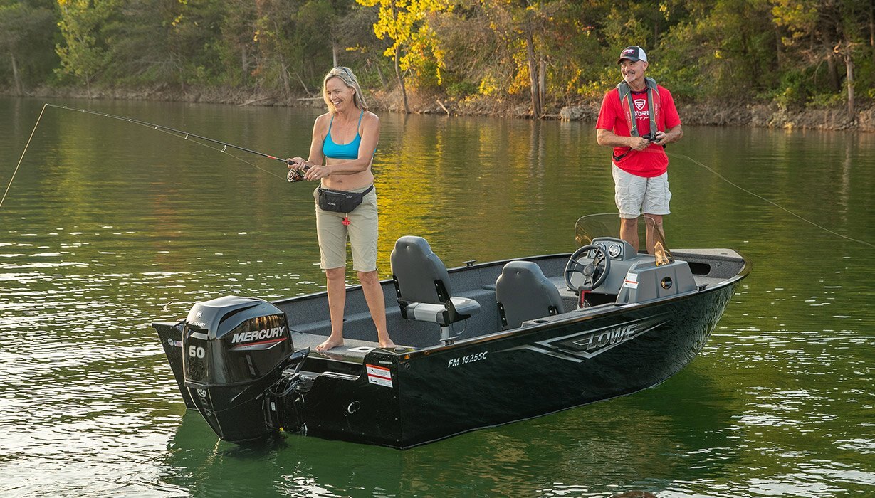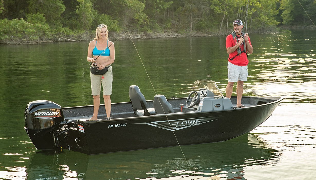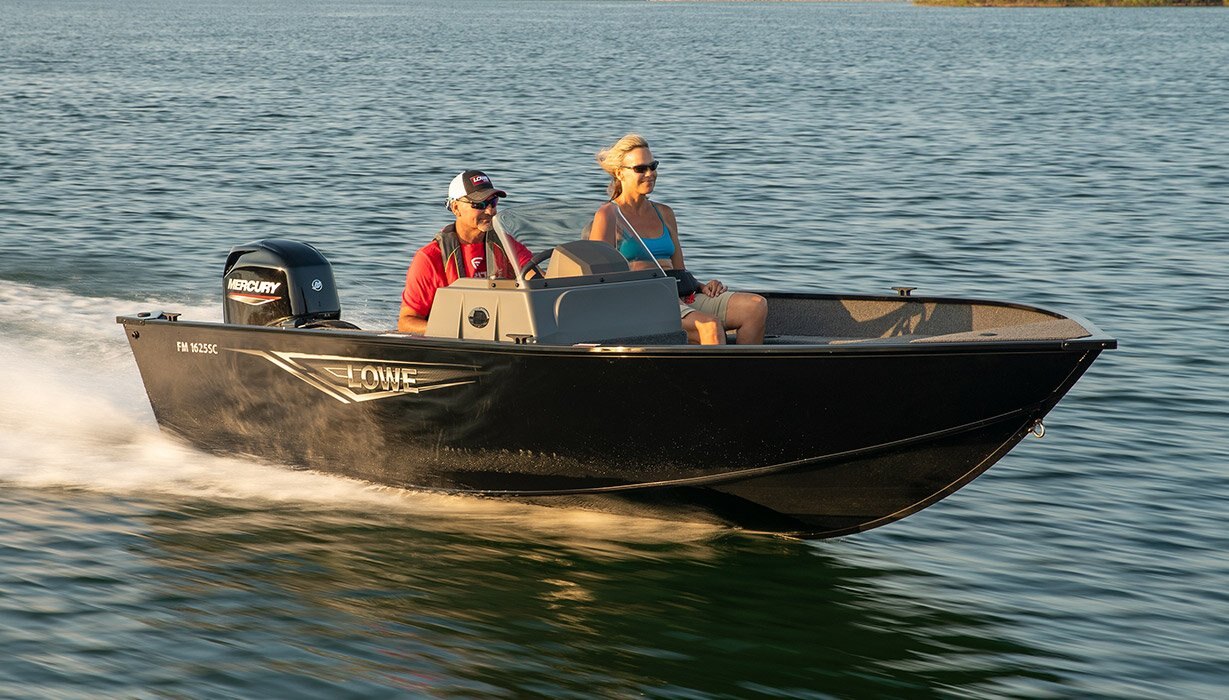 The Lowe FM 1625 SC’s tournament-inspired design provides unbelievable value and performance at a believable price. It features a huge in-floor rod locker that can carry up to (6) 8’ rod lockers, two ultra-comfortable pedestal fishing seats with 6 bases, and a large 23-gallon bow livewell. Its Deep-V aluminum hull handles rough water with ease, while its massive deck provides serious anglers a competitive edge to reel fish in. It also comes packed with plenty of smart storage space, a durable side console with chrome bevel gauges, and convenient flip-up stainless steel cleats. The professional-grade FM 1625 SC is a fishing machine that lives up to its name. It’s everything you love about Lowe in a compact-sized, ready-for-action fish boat.
