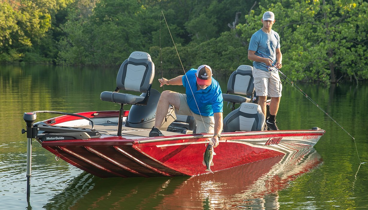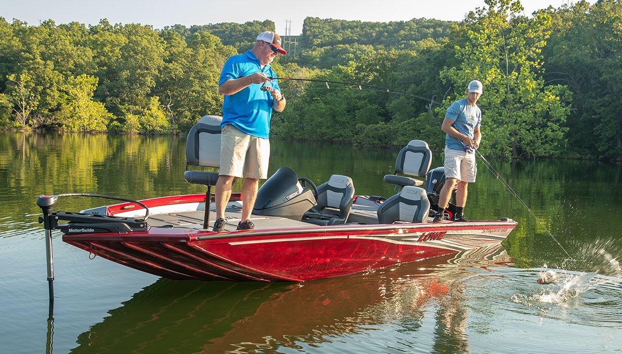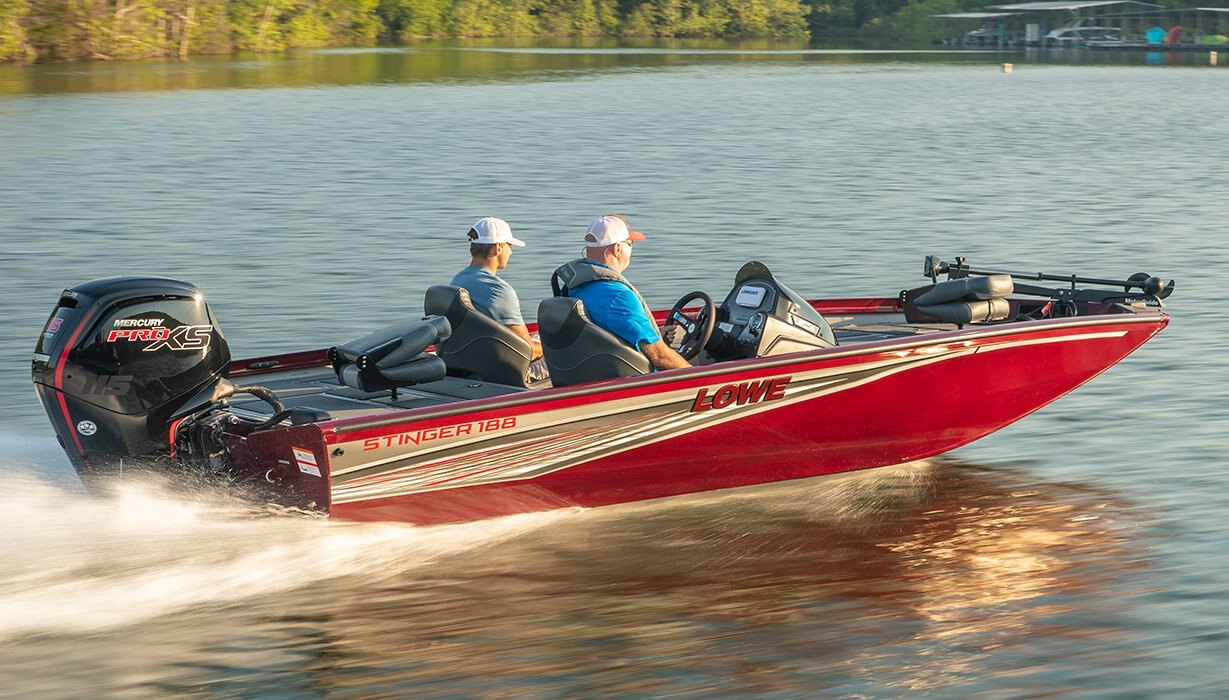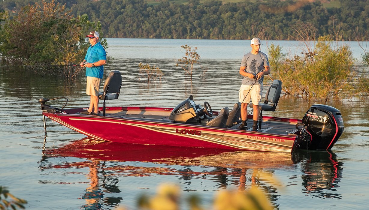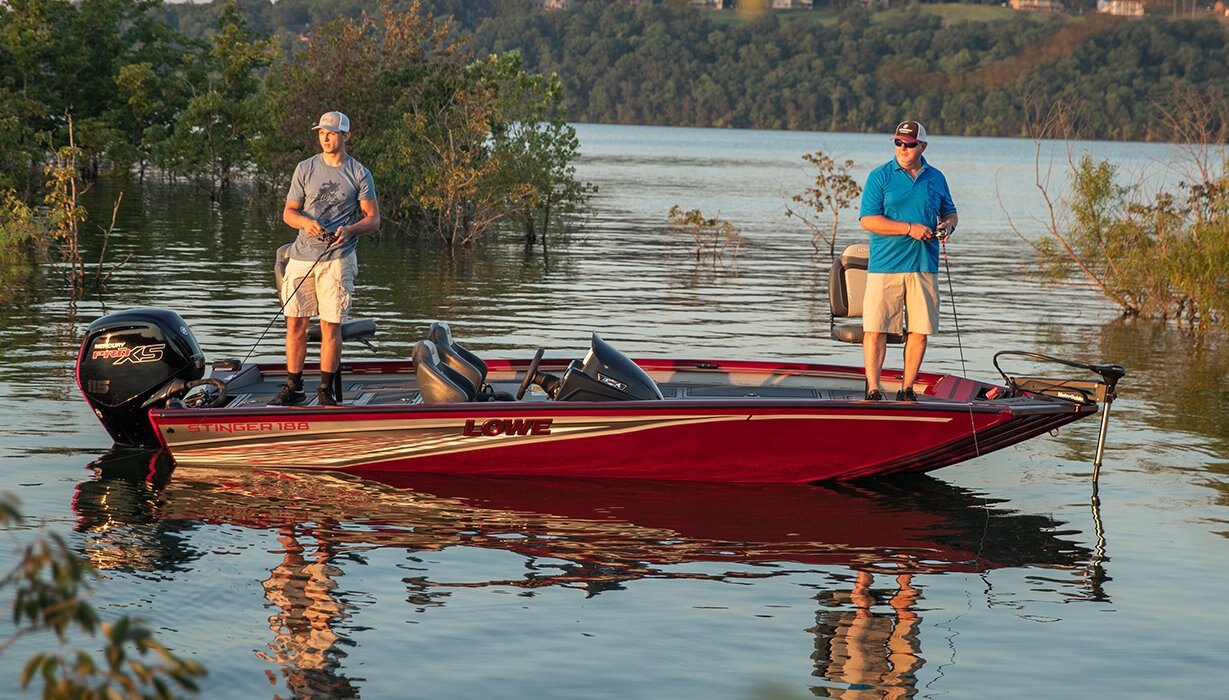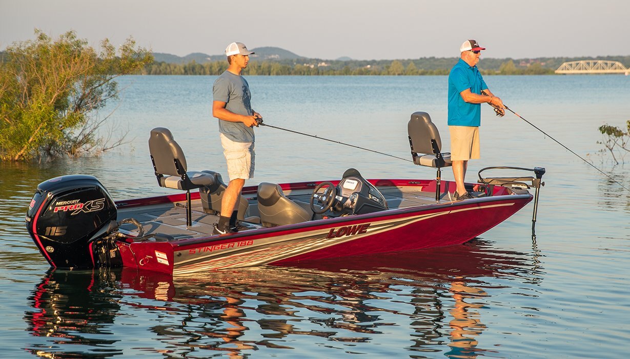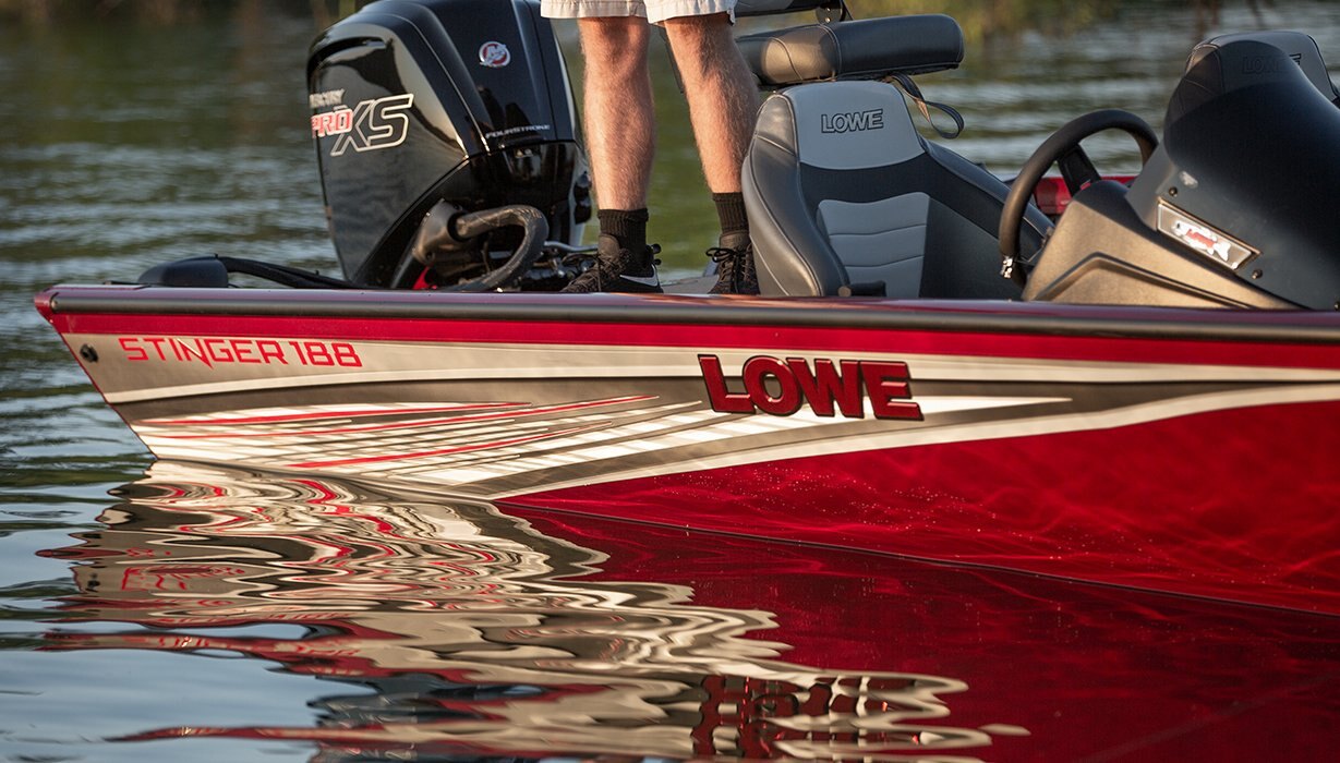 | The recently updated Lowe Stinger 188 is designed to custom-fit the way you fish for bass, down to the last detail. From the look of the upgraded red backlit console panel to the feel of its super-wide 94” beam under your feet, this legend was born to help you fish better. This all-aluminum champion is designed with best-in-class features including over 77 sq. ft. of fish-fighting space to keep you right in the action. With capacity for up to 115 horsepower, the Stinger 188 gets you on the fish fast, and thanks to durable Lowe construction, it can handle greater stresses and bigger fishing action than the competition. Premium fishing features include lockable rod storage with 8 tubes, aerated livewell, comfortable fold-down fishing seats, a MotorGuide X3 45FW trolling motor and more. Top it all off with a stylish fiberglass console with metal flake finish, tons of in-deck storage, and eye-catching red-tint accents, and you’ve got a formidable bass-fishing weapon. |