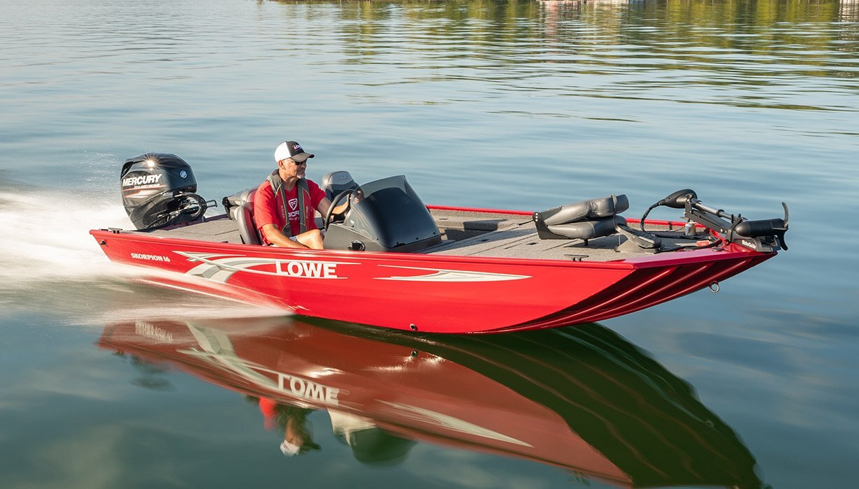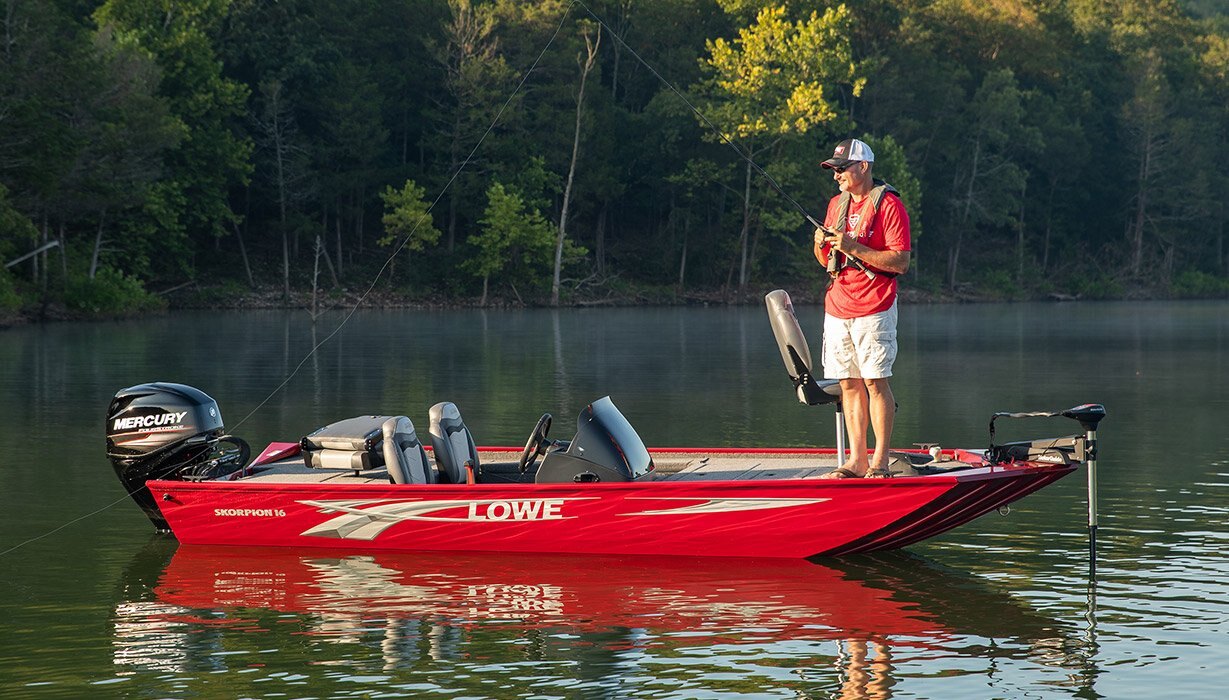 | Proven value and expertise are what Lowe Boats is all about. Exhibit A: the durable, no-nonsense Lowe Skorpion. This rugged, all-aluminum Mod-V fishing boat comes well equipped at a terrific price, with the features and layout you need for fishing success. The Skorpion includes ample storage capacity, an aerated livewell, and loads of fish-working space to keep you on top of your game and within your budget. Quality Lowe construction means you can enjoy serious fishing action for years to come. |