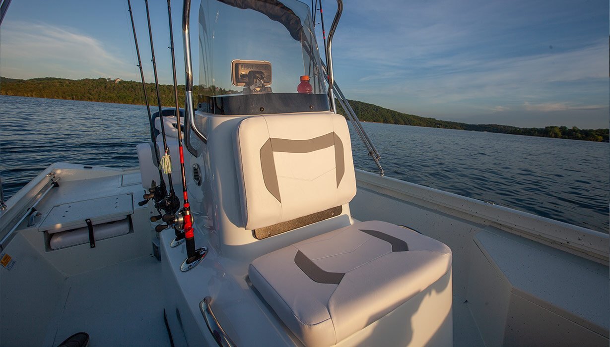 • 2 Fold-down fishing seats w/stainless steel pedestal bases