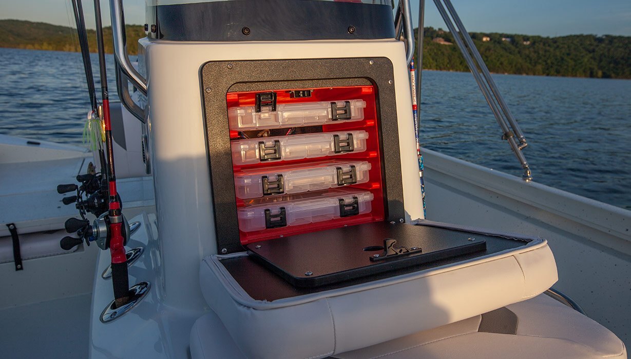 • Locking bow port & starboard rod lockers (7'6" rod length)