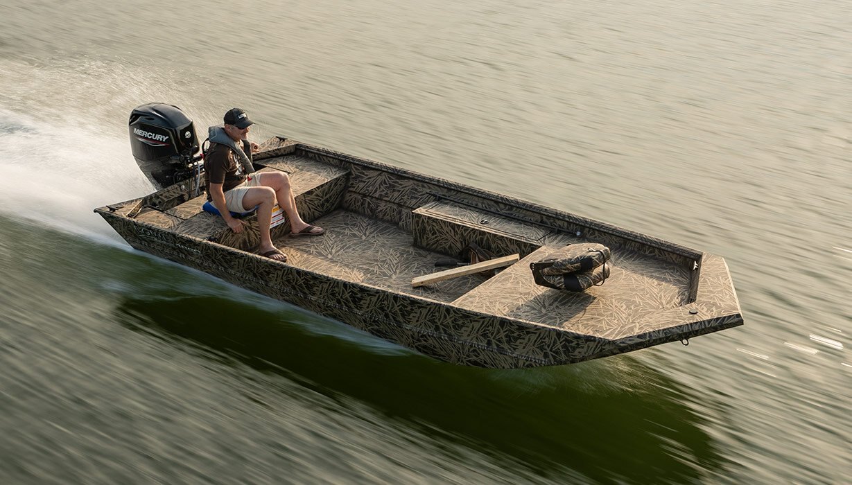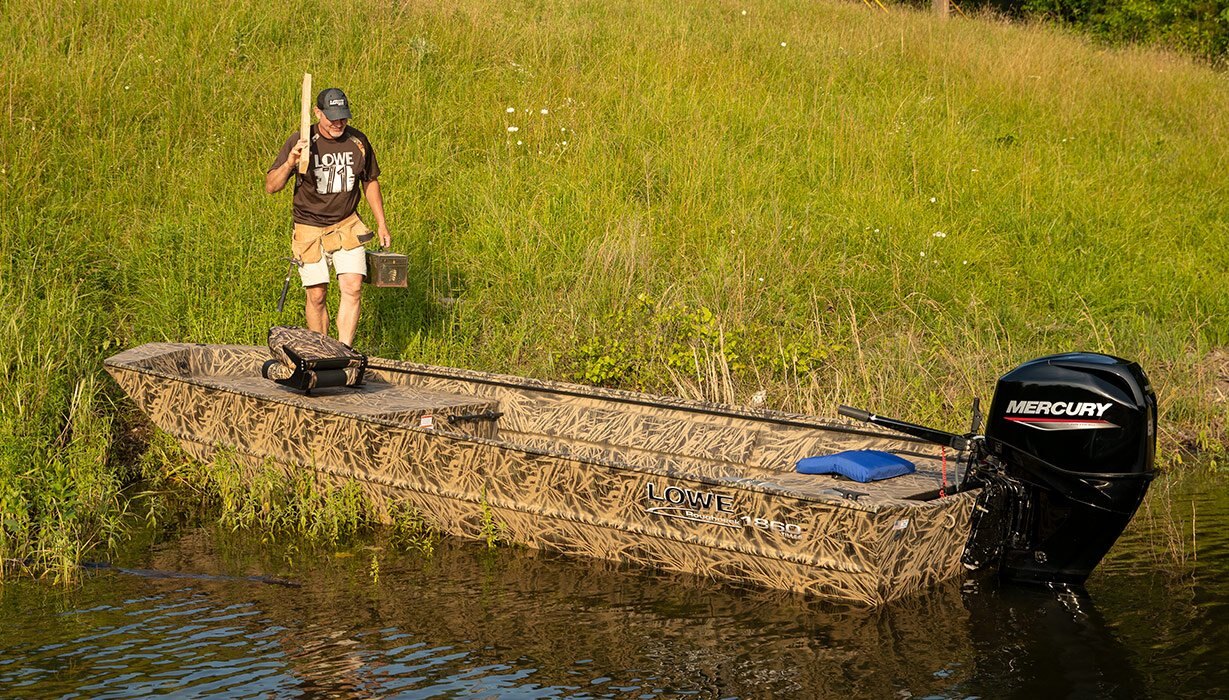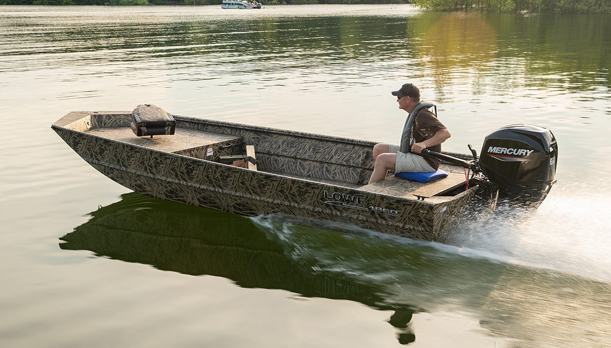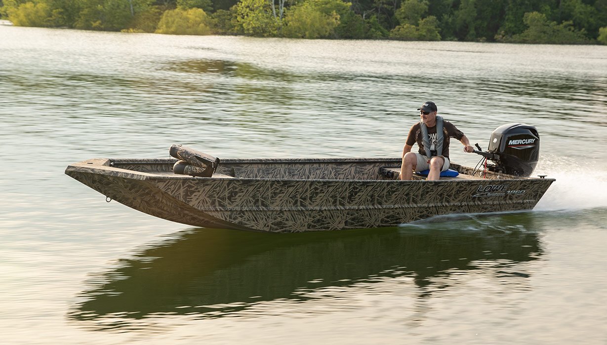| Built for maximum utility for the toughest jobs, the Roughneck 1860 was also designed with lasting durability in mind. This commercial-grade Lowe jon boat sets the standard for top-quality construction and comes equipped with all the elbow room you need for fishing, hunting or work success. Maximum performance is ensured with a VorTrac™ V at the transom and variable deadrise to the bow to provide the ultimate smooth, dry ride. Pursue your passions at the helm of this incredibly capable, reliable jon. |