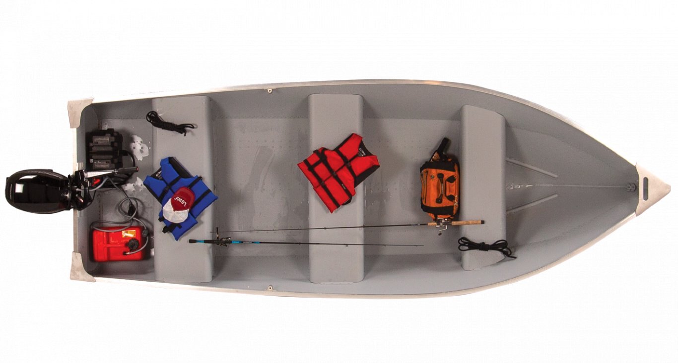Important features include: natural aluminum exterior with a gray interior, all-welded hull seams, heavy-duty extruded center keel, formed in spray rails, aluminum-clad transom, extruded gunnels, stern corner castings with handles and bow casting with handle, oar locks and 3 full bench seats. |