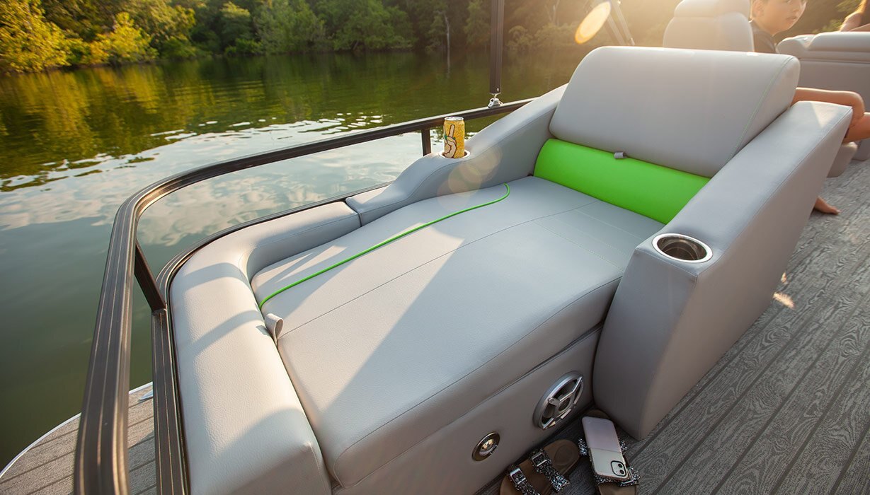 New for 2021, here is the surprise of the season. Discover the all-new SS250 RFL or Rear Facing Lounge pontoon. The largest of our new SS RFL’s, we took one of our most popular premium layout configurations and brought it to our best-selling SS lineup.