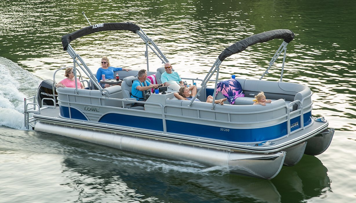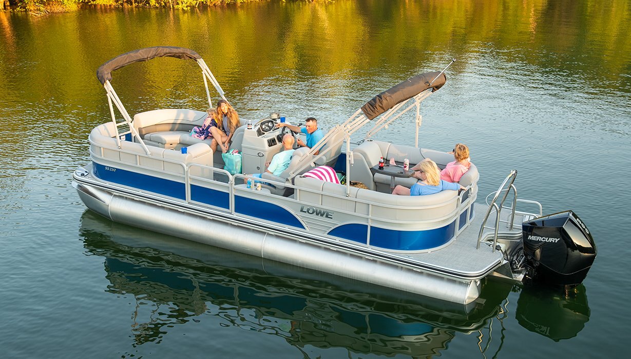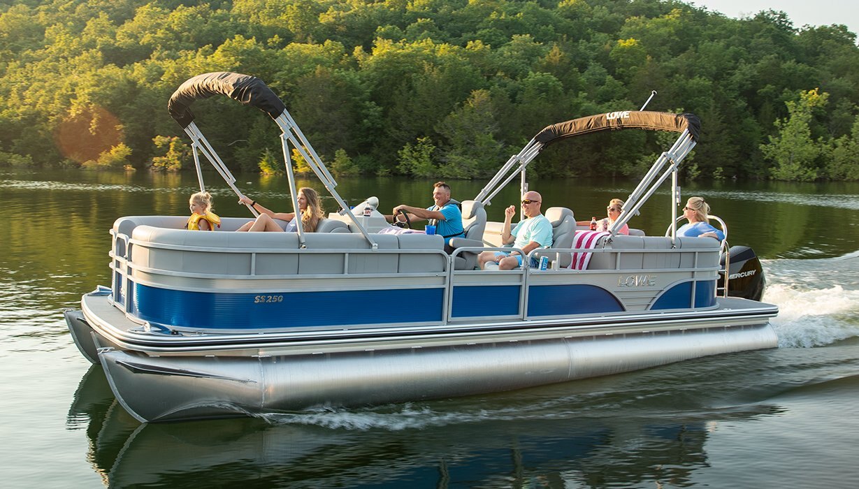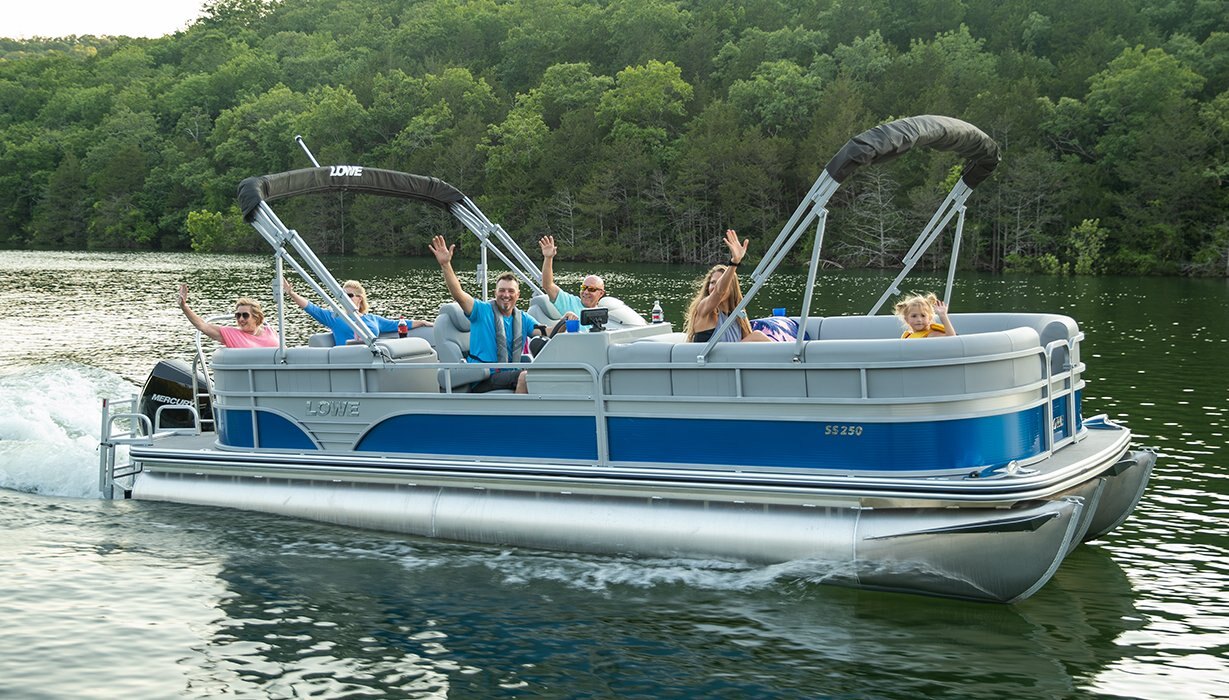 Step aboard the Super Sport 250 Walk-Thru pontoon boat and prepare to fall in love. Top-quality Lowe construction means details like full-width cross members for total support. And with the SS 250 Walk-Thru, you get plenty of oversized bow and aft seating, plus premium amenities like a Jensen® Marine stereo and a 9-foot Bimini top. All in a spacious, center walk-thru layout that gives you and your crew loads of room to spread out and soak up the action.