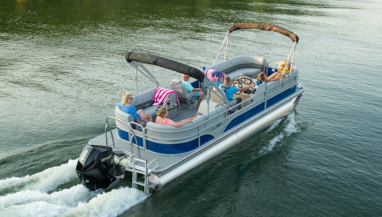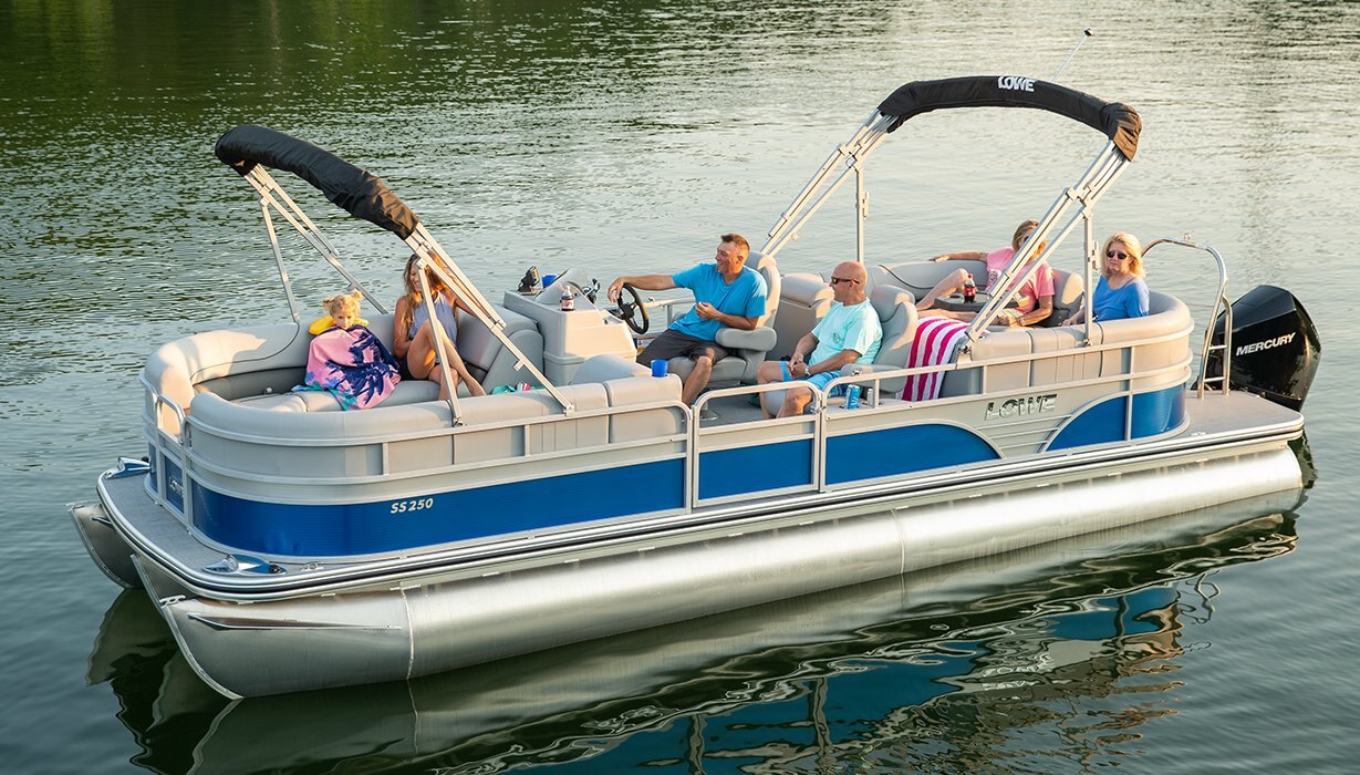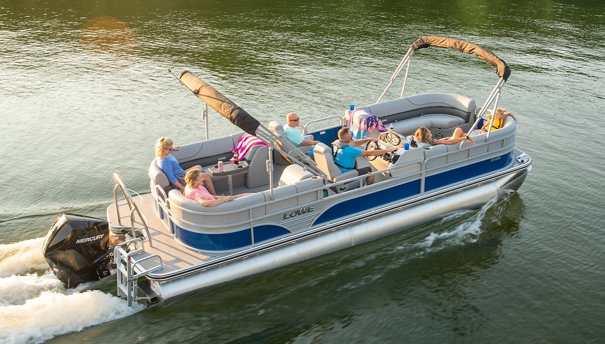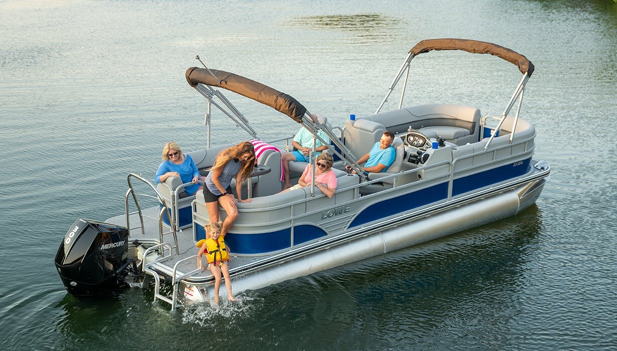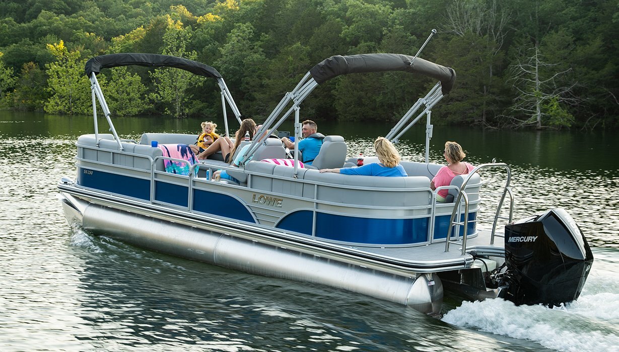 Step aboard the Super Sport 250 Walk-Thru pontoon boat and prepare to fall in love. Top-quality Lowe construction means details like full-width cross members for total support. And with the SS 250 Walk-Thru, you get plenty of oversized bow and aft seating, plus premium amenities like a Jensen® Marine stereo and a 9-foot Bimini top. All in a spacious, center walk-thru layout that gives you and your crew loads of room to spread out and soak up the action.