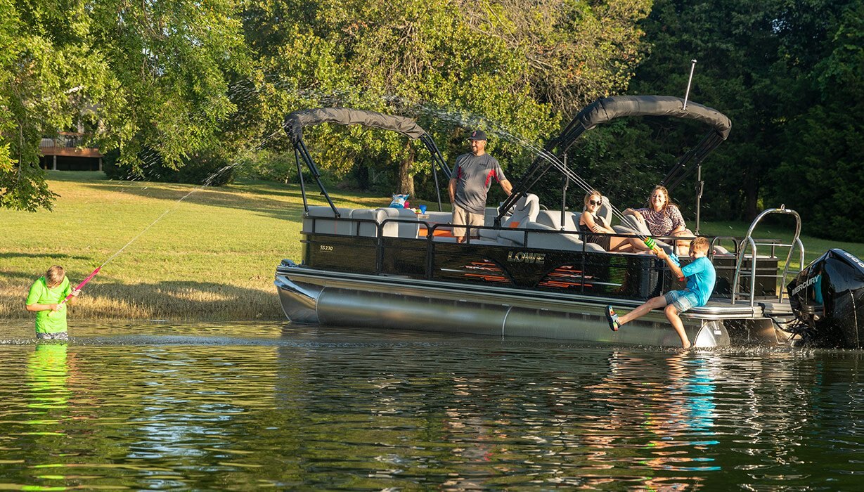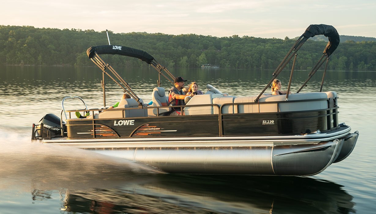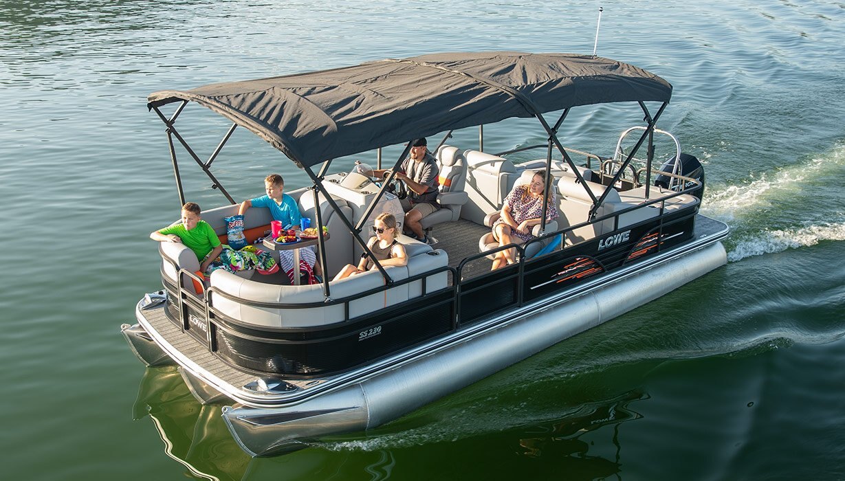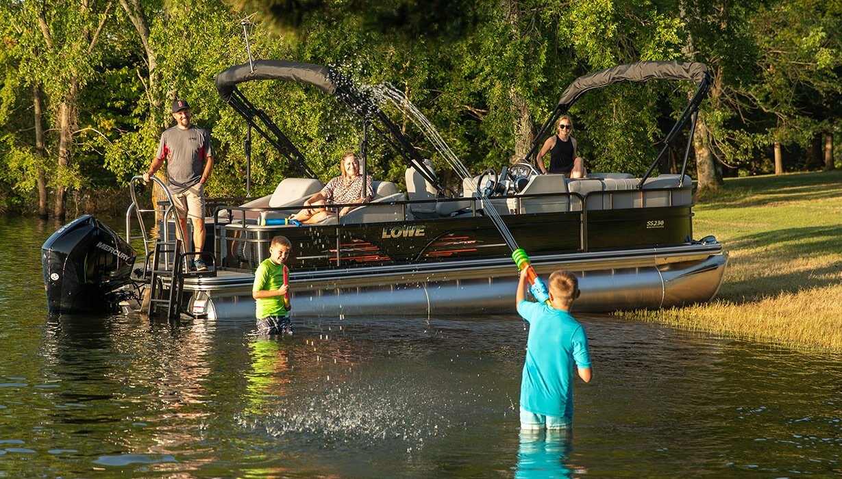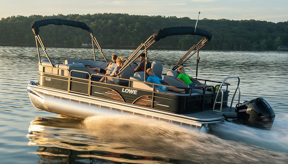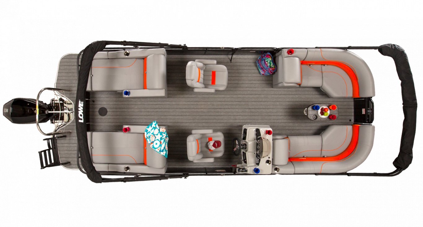 | These days, there’s all kinds of reasons to buy a pontoon boat. And with the all-new SS230 RFL, we may have just given you the best reason yet. We took one of our most popular premium deck configurations, the RFL or Rear Facing Lounge, and brought it to our best-selling SS lineup. Now you can have rear facing comfort and style in a spacious mid-sized cruiser. Two spacious rear facing seats contour your guests in complete comfort while cozy armrests, fence cushions, and stainless steel cup holders indulge their experience. Guests can relax in the sun or watch watersports action from the best seat in the house. The RFL isn’t only comfortable, its loaded with standard features that highlight comfort, style, and fun too. Your guests will appreciate the RFL's convenient cup and storage nooks, new standard vinyl textured flooring, super comfortable front chaise lounges, and Bluetooth® enabled stereo and integrated speaker system. At the helm, an attractive fiberglass console with chrome accents and multi-position helm chair with armrests awaits. And with Lowe Pontoon’s 50 years of pontoon heritage, you can cruise confidently on a quality new pontoon. |