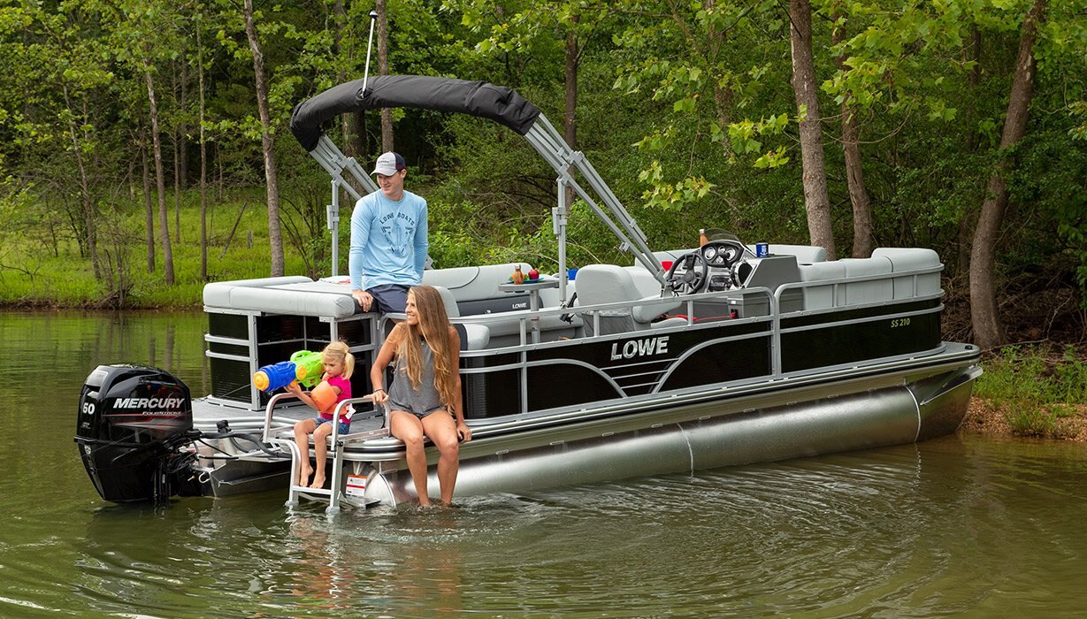 Enjoy premium amenities and long-lasting durability at an affordable price with the Lowe Super Sport 210 pontoon. Plush seating, ample amenities, loads of storage space, and efficient Mercury® power combine with impeccable Lowe construction standards—all at an unbeatable value. See for yourself how a Lowe Super Sport pontoon boat empowers all-day fun on the water.