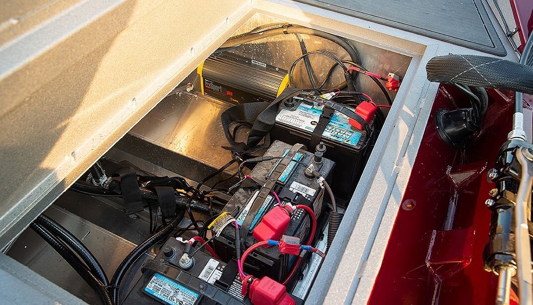 In-floor trolling motor foot pedal allows for maximum control while navigating from the bow.