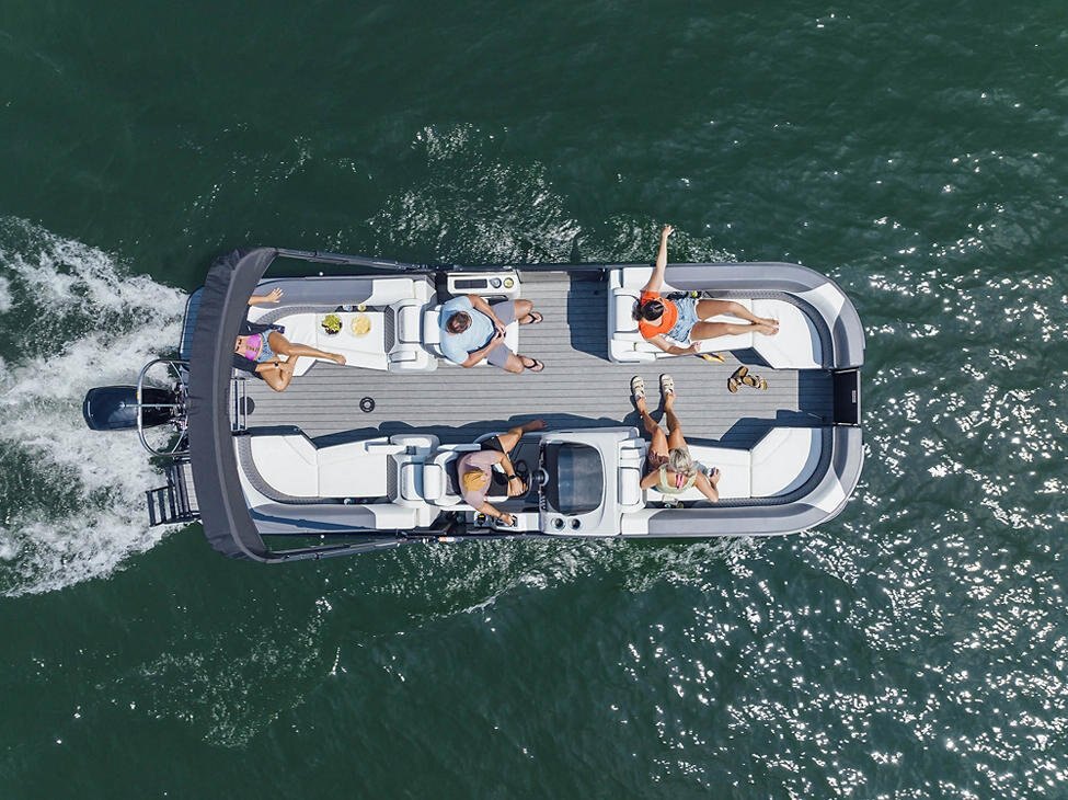 The 9" Simrad® touchscreen console and premium 6-speaker sound system let you chart the best course and command the best vibes.